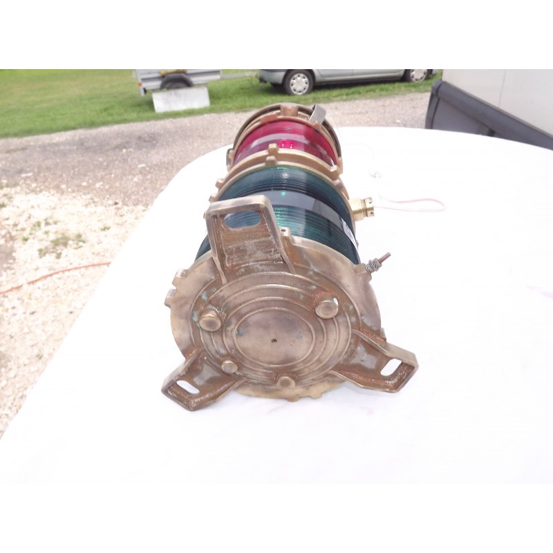 Lampe de Marine Babord Tribord Bronze avec ces verres de couleur Fresnel , haut : 50 cm , diam : 20 cm , poid : 9,2 Kg , trés bon ètat , d'aspect et de marche , électrifiè , d'autres photos sur votre messagerie , visible à GARDONNE (24) envoi en mondial relay de :20 € livraison 4 a 5 Jours ou en colissimo de : 27 € livraison 3 a 4 Jours ou en chronopost de : 30 € livraison 1 Jour
