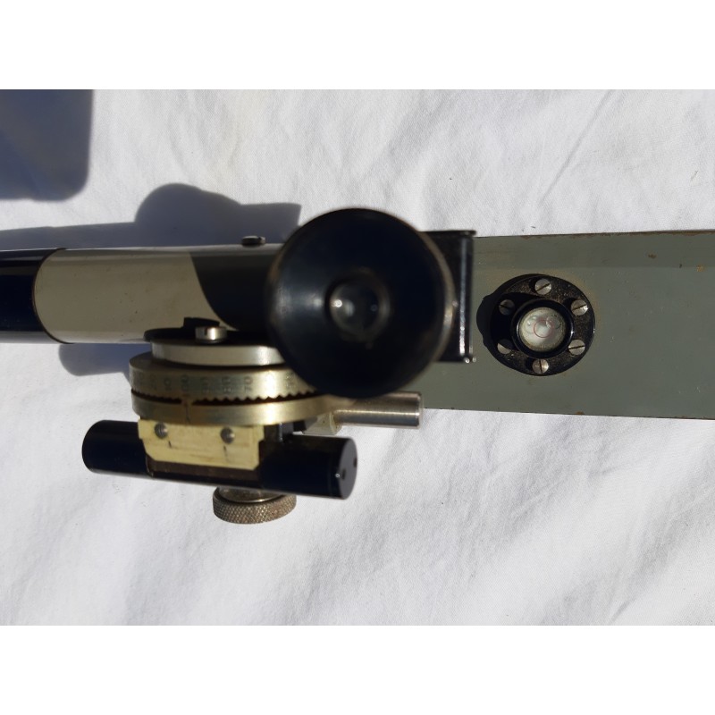 Instrument d'optique et de précision régle éclimètre Deronzi et Cie 1931 , dans sa boite en noyer laiton et cuir , haut de l'instrument : 9 cm , long et larg : 55,5 cm sur 6,5 cm , haut boite : 12,5 cm , long et larg : 59,5 cm sur 9,5 cm , poid : 2,6 Kg , trés bon ètat , visible à GARDONNE (24)