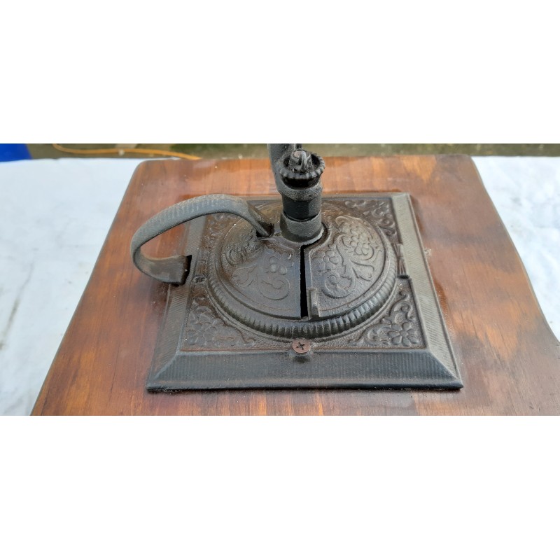 Moulin à Café 19 ème Bois et Fonte , Haut : 35 cm , avec poignée , 20 cm , coffre bois , Diam : 27 cm , poids : 3,3 Kg , trés bon ètat , Grand Modéle |