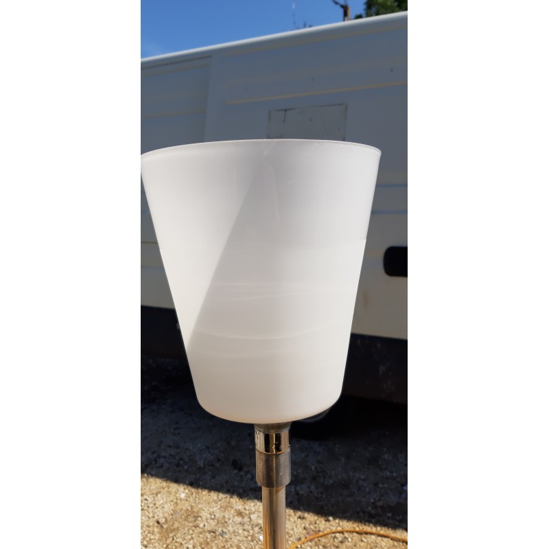 Lampe MAZDA Année 30 , Alu , Chrome et Opaline Blanche , Haut : 82,5 cm , Haut Opaline : 23 cm Diam : 22 cm , Diam pied : 20 cm , poids : 3,4 Kg , trés bon ètat |