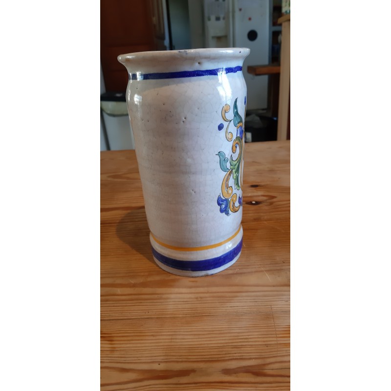 2 Pots a Pharmacie en Faience , Haut : 22 cm , Diam : 12 cm et Haut : 20 cm , Diam : 10,5 cm , poids : 1,7 Kg , trés bon ètat |