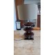 Lampe Vintage des Années 70 , Faience Marron et Chrome , Abat jour Tissus , Haut : 55 cm , Diam Haut : 30 cm , Diam bas : 19 cm , poids : 3 Kg , trés bon ètat