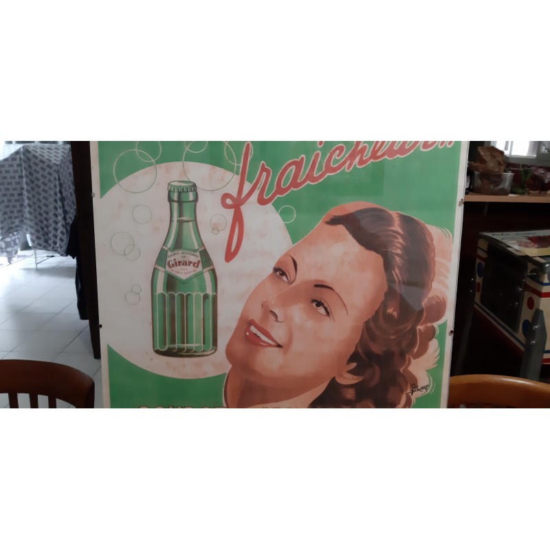 Affiche Source Jaillissante de Girard par G.Maubaret Libourne Galgon , encadrée sous verre , Dimensions : 70 cm sur 50 cm , trés bon ètat envoi sans le verre , envoi en rouleaux |