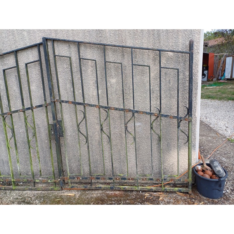 Portail Fer Forgé 2 Battants , Haut : 178 cm et 160 cm , Long et larg : 3 m sur 3,5 cm , Tube plein en rectangle de 3 cm sur 1 cm et Carré de 3,5 cm de Diam , volutes en S entre les Barreaux , trés lourd , 160 Kg pour le Total , trés bon ètat |