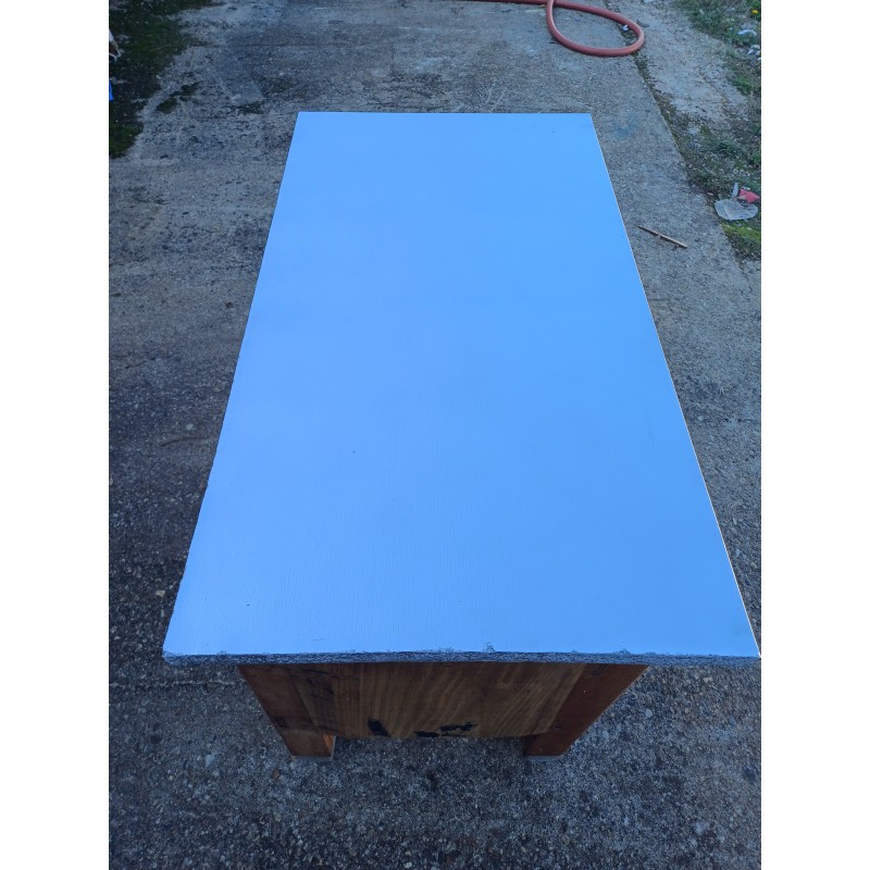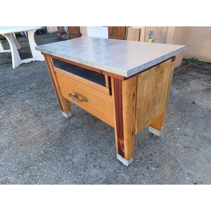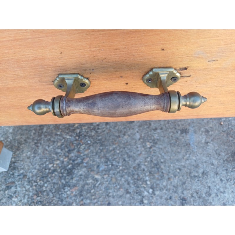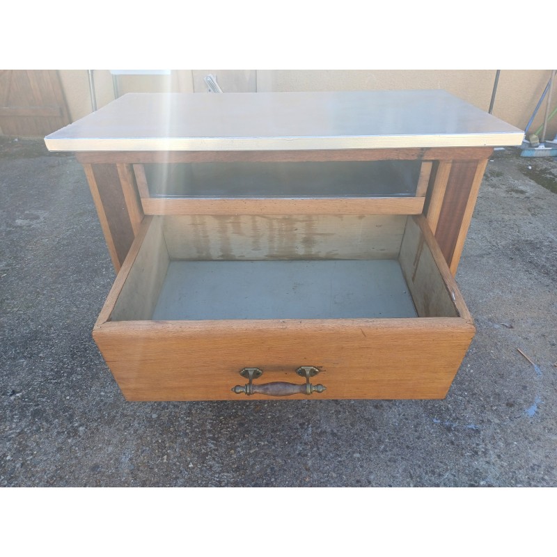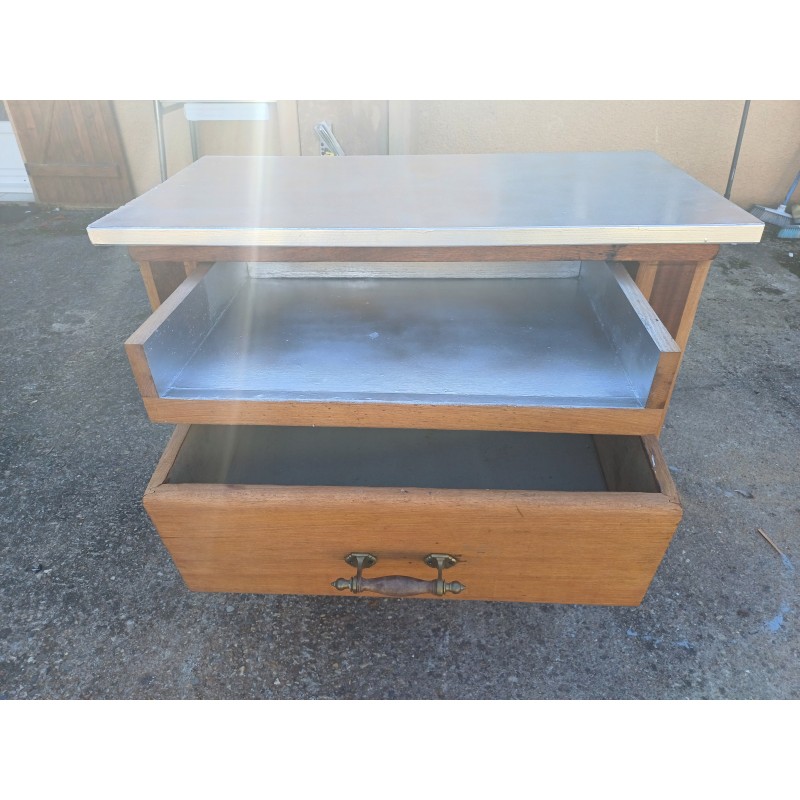 Meuble de Rangements , 2 Tiroirs , Bois Chéne et Acajou , Plateau cérusé métal Chromé , Poignée Bronze , Haut : 76 cm , long et larg : 103 cm sur 56 cm , poids : 40 Kg , trés bon ètat