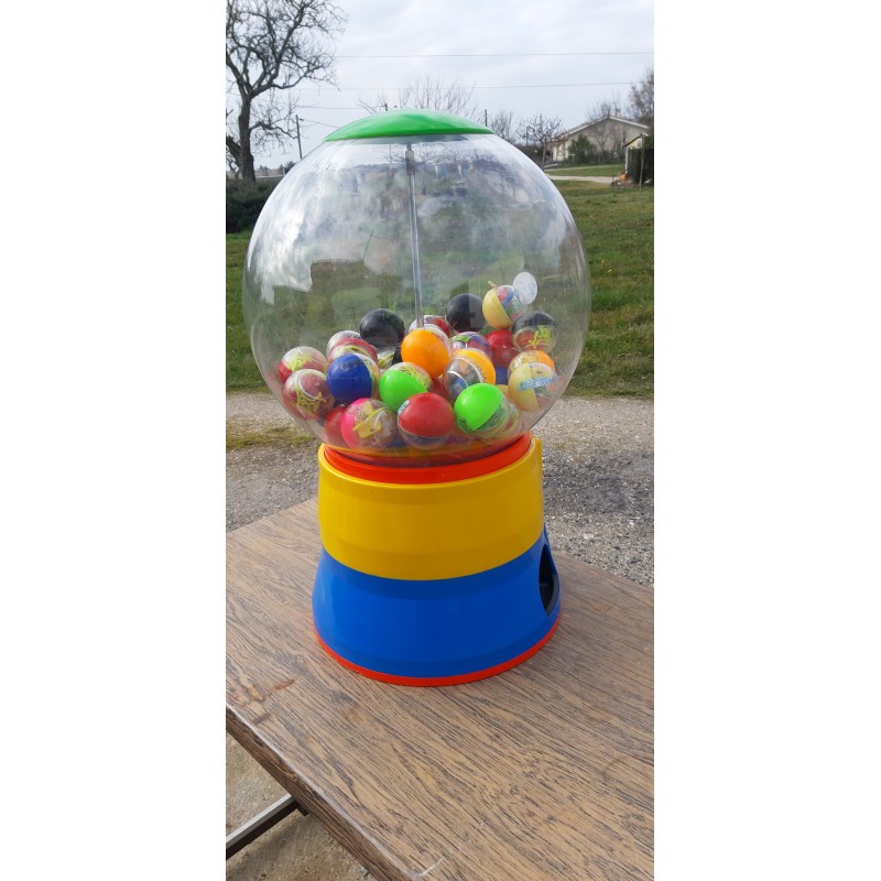 Distributeur a Boules Jeu de Féte Foraine , avec une cinquantaine de Boules avec Toupies Beyblade a l'intérieur , Diam boules : 7 cm , pièce de : 2 euro , Haut : 70 cm , Diam : 45 cm , poids : 10 Kg , Plastic , trés Bon ètat d'aspect et de fonctionement , vous acheté ce que vous voyez en photo |