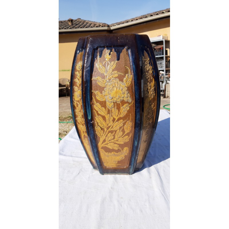 Vase Chine en Grés émaillé estampillé cachet en Creux , Haut : 65 cm , Diam : 38 cm , poids : 14 Kg , trés bon ètat , |