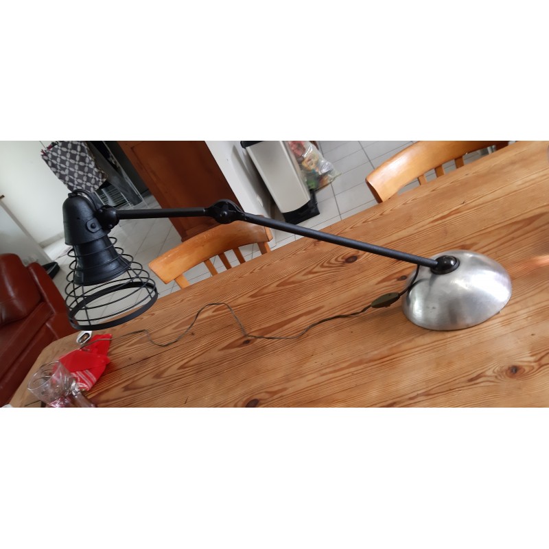 Lampe Industrielle MAZDA de Style Gras de 1930 , Base Alu , Plombé Fonte , 2 Bras Articulés , Reflecteur Grille , Articulable dans toutes les Positions , Haut : 75 cm , Diam base 18 cm , Réflecteur Diam : 14 cm , long : 20 cm , poids : 3,5 Kg , trés bon ètat , |