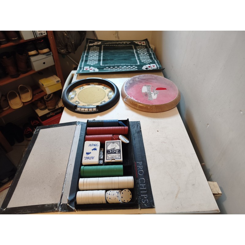 Lot de Jeux de Tapis de Cartes , Dés et Boite de Jetons , 3 Jeux Tapis Rond et Rectangulaire , très bon état