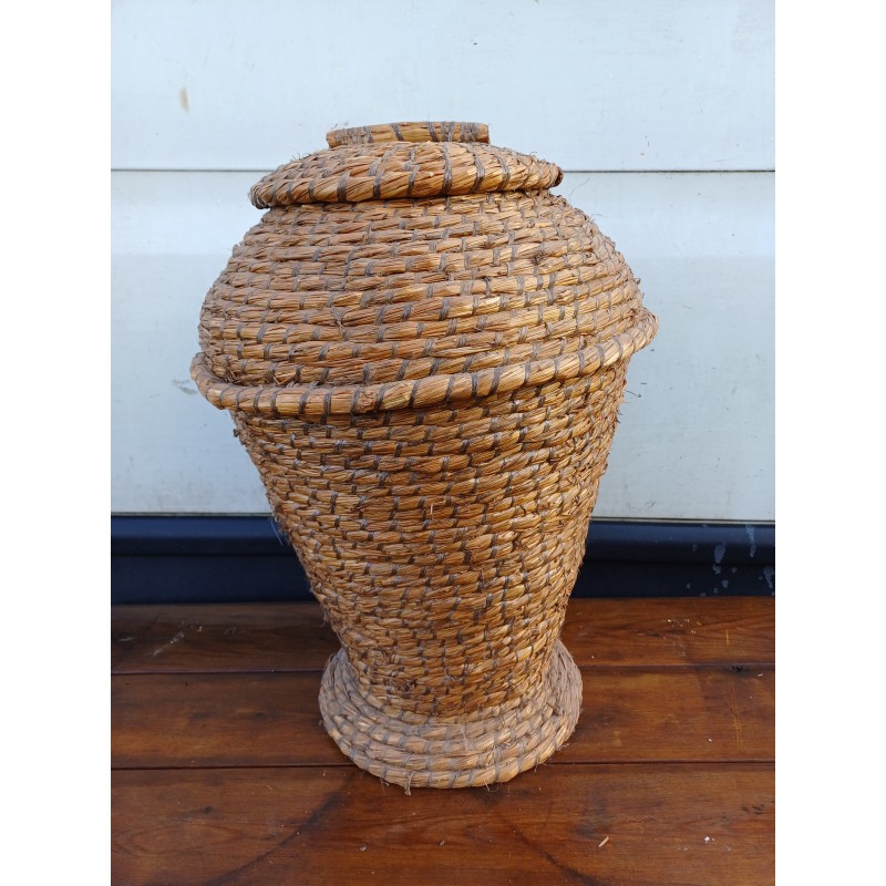 Panier Osier tréssé , Haut : 62 cm , Diam : 43 cm , poids : 2 Kg , trés bon ètat |