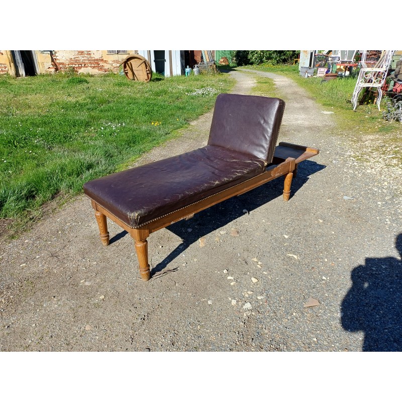 Banquette de Medecin Chéne et Cuir 19 éme , Haut : 47 cm , long et larg : 150 cm sur 62 cm , Dossier réglable , Siége rétractable , trés bon ètat , le cuir à vécu , mais encore utilisable