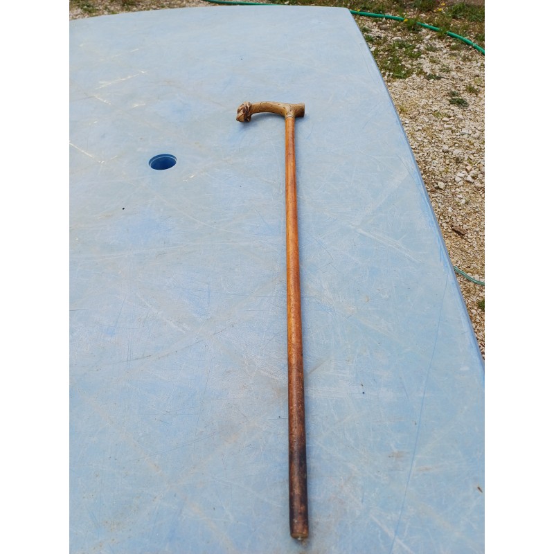 Canne Ancienne Roncier " Téte de Chien " , Long : 83 cm , Pommeau : 15,5 cm sur 4 cm , poids : 330 g , trés bon ètat
