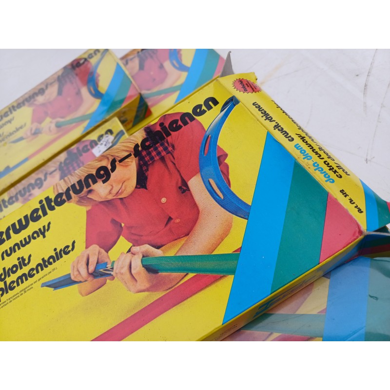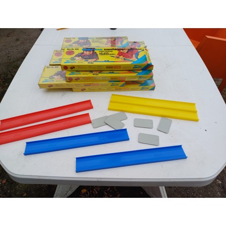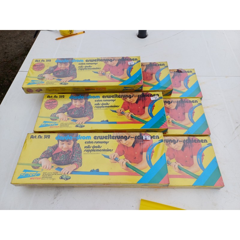 8 Boites de Circuit Rails Plastic Clipsables , Made in Germany : Darda Motors , 6 rampes de 35 cm par boite , larg : 4 cm , soit : 16,80 Métres mis bout a bout , peut ce plier pour faire un rond , Produit Neuf encore sous Blister , poids Total : 2,3 Kg ,