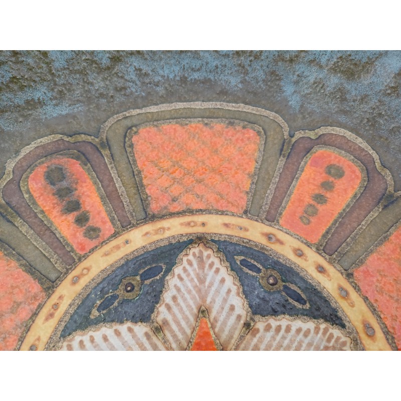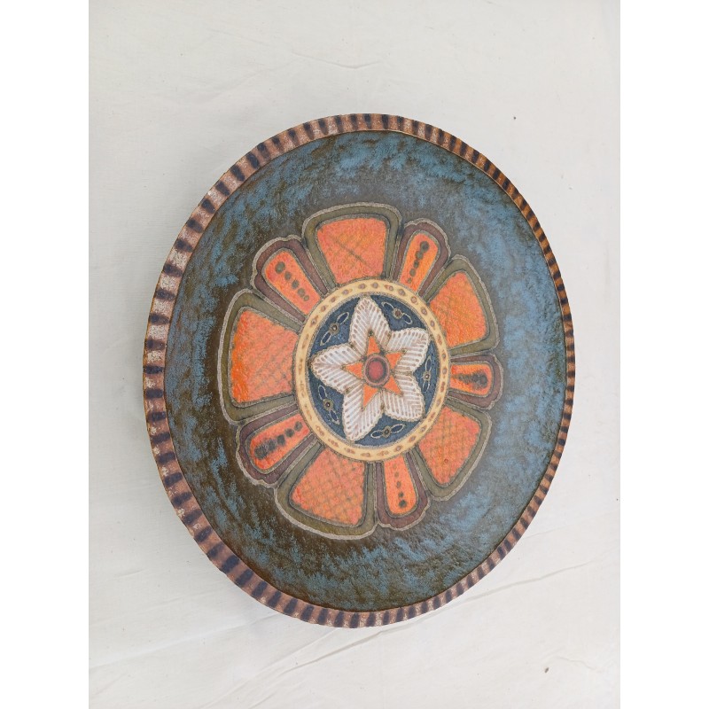 Plat Rond Vintage de Kellner Jan , Terre cuite émaillée à décor Géométrique , Haut : 7 cm , Diam : 43 cm , poids : 2,6 Kg , trés bon ètat
