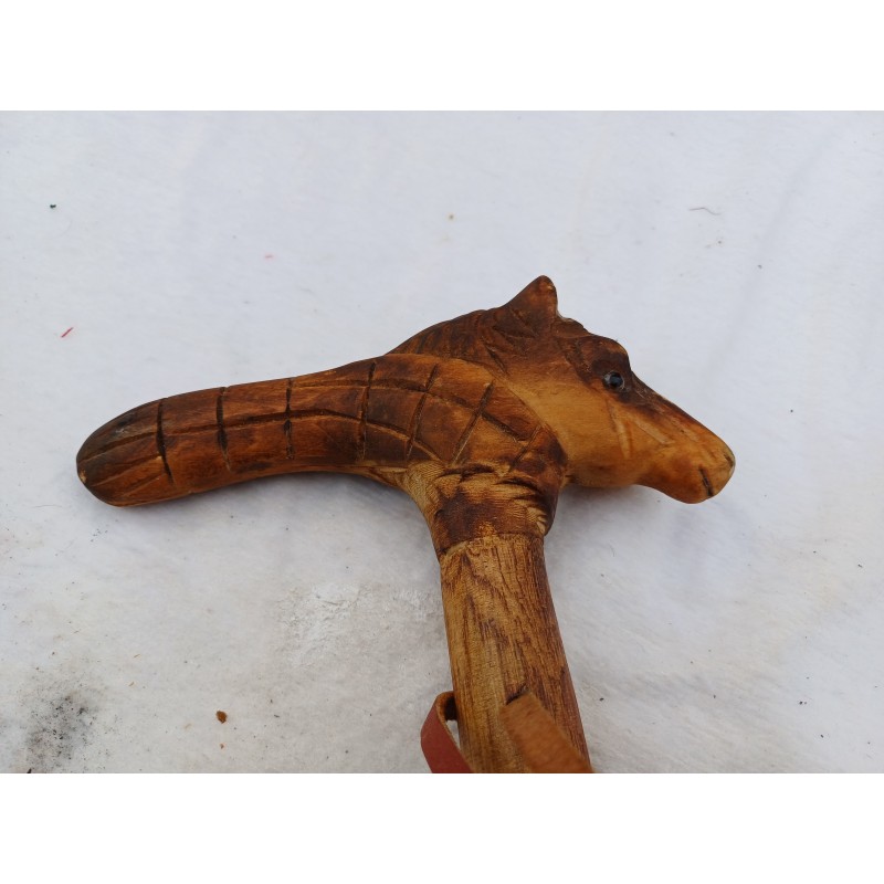Canne Bois " Téte de Cheval " Long : 83 cm , Poignée : 16,5 cm sur 3,5 cm , poids : 400 g , trés bon ètat