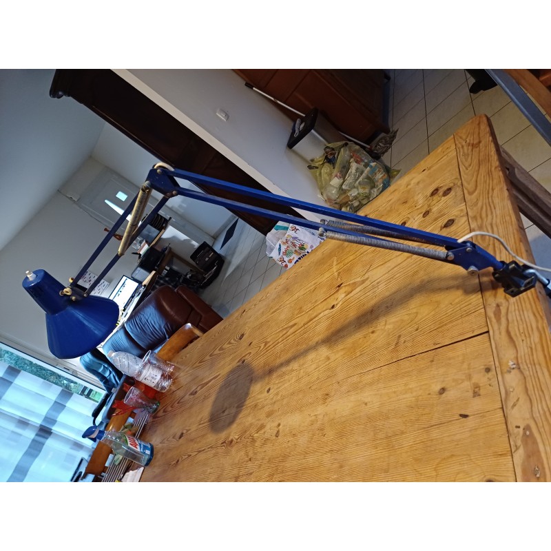 Lampe de Bureau et d'Architecte Model T1 , 2 Bras repliables , Téte Pivotante , Interupteur a la téte , Haut dépliée : 120 cm , Diam téte : 17 cm , Vis de serrage coin de bureau , Poids : 1,2 Kg , trés bon ètat ,