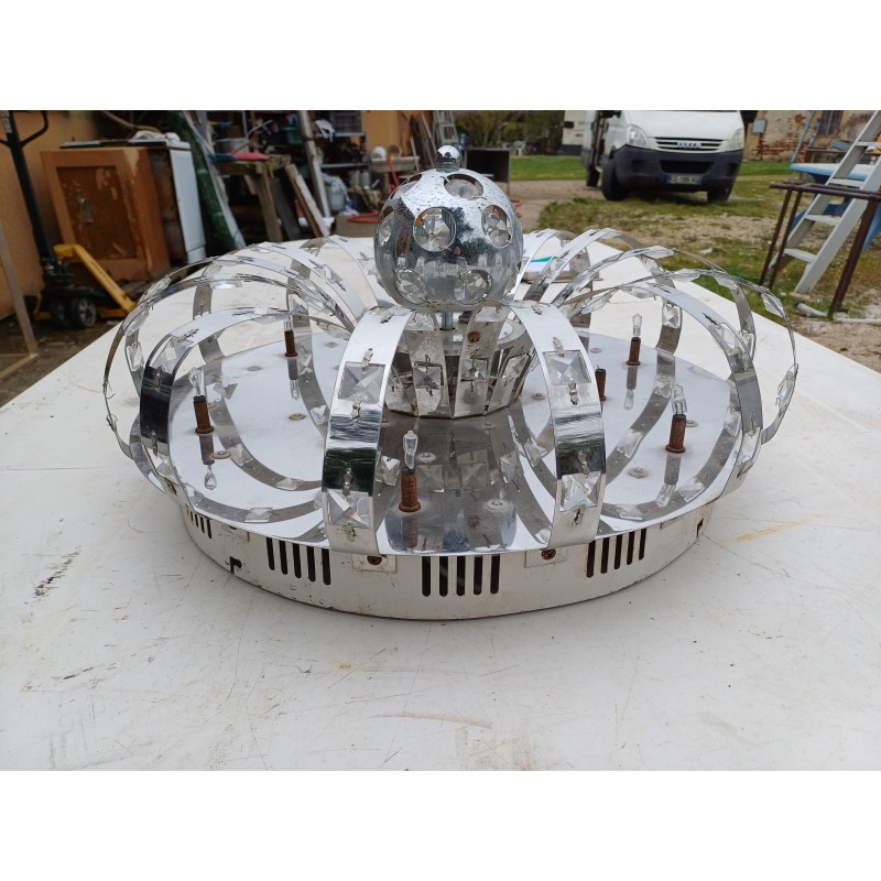 Suspension Vintage de marque WOFI Germany , Aluminium + verre , Haut : 24 cm , Diam : 53 cm , poids : 5 Kg , bon ètat ,