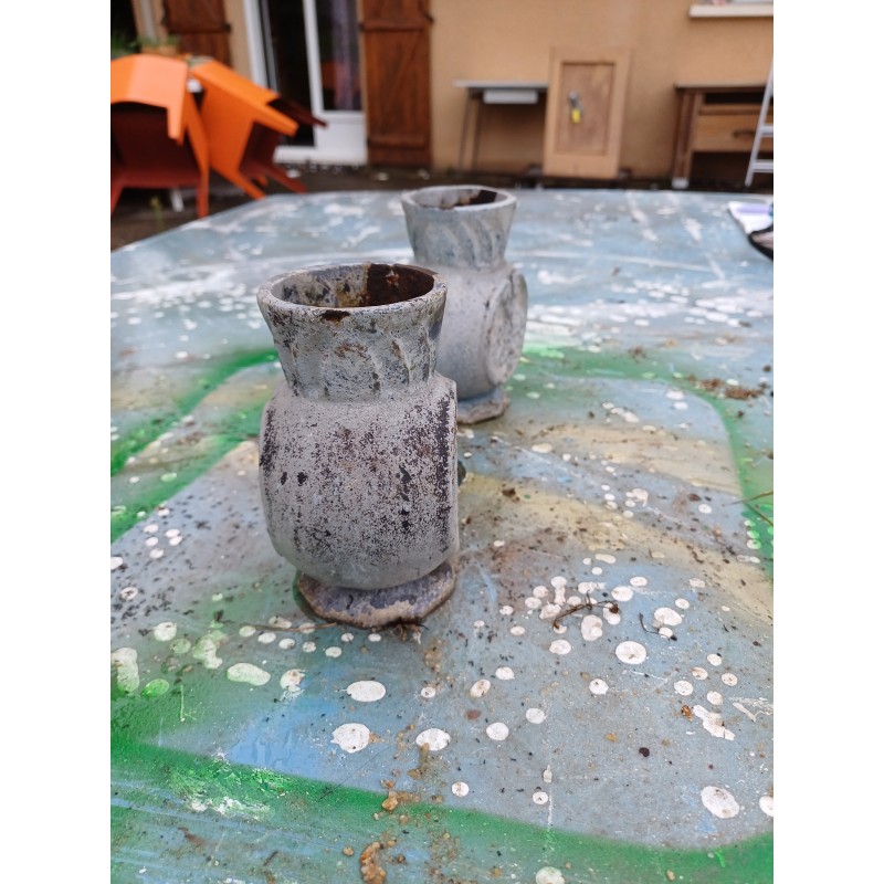 Paire de Vases en Fonte 1900 de Charleville - Mézières , Haut 13 cm , Long et larg : 9 cm sur 7 cm , poids: 2 Kg , trés bon ètat , Véritable , No Copy ,