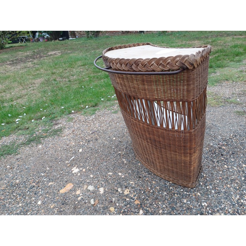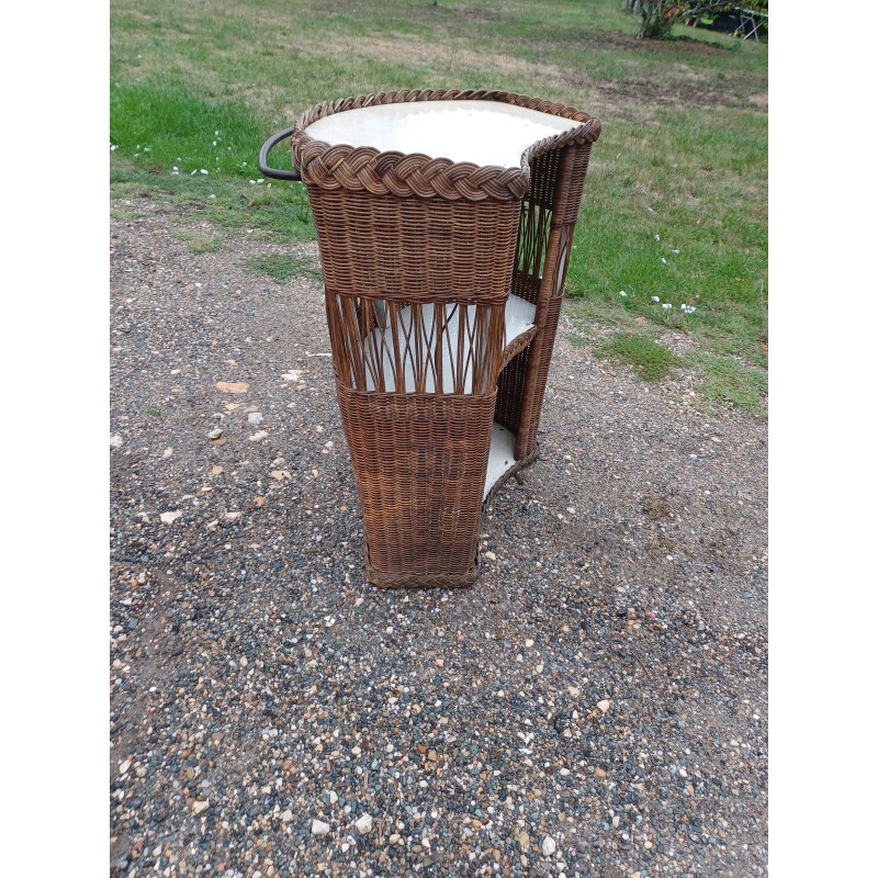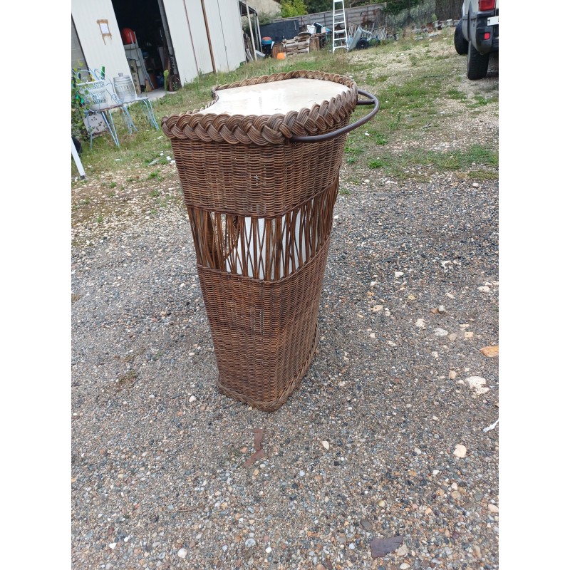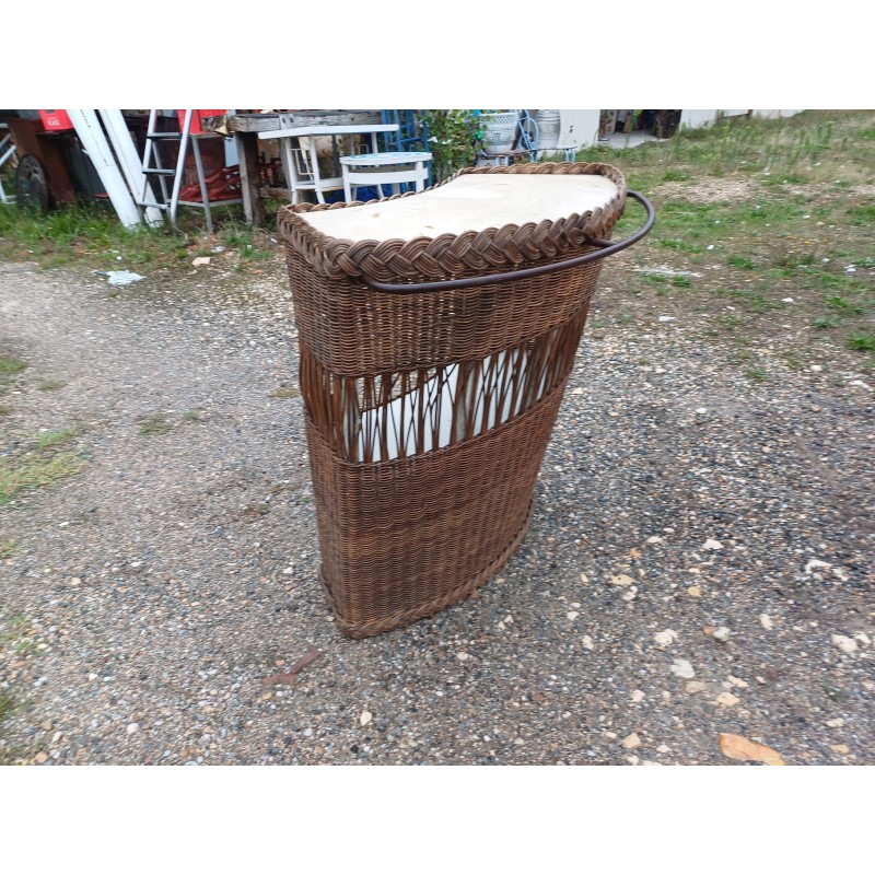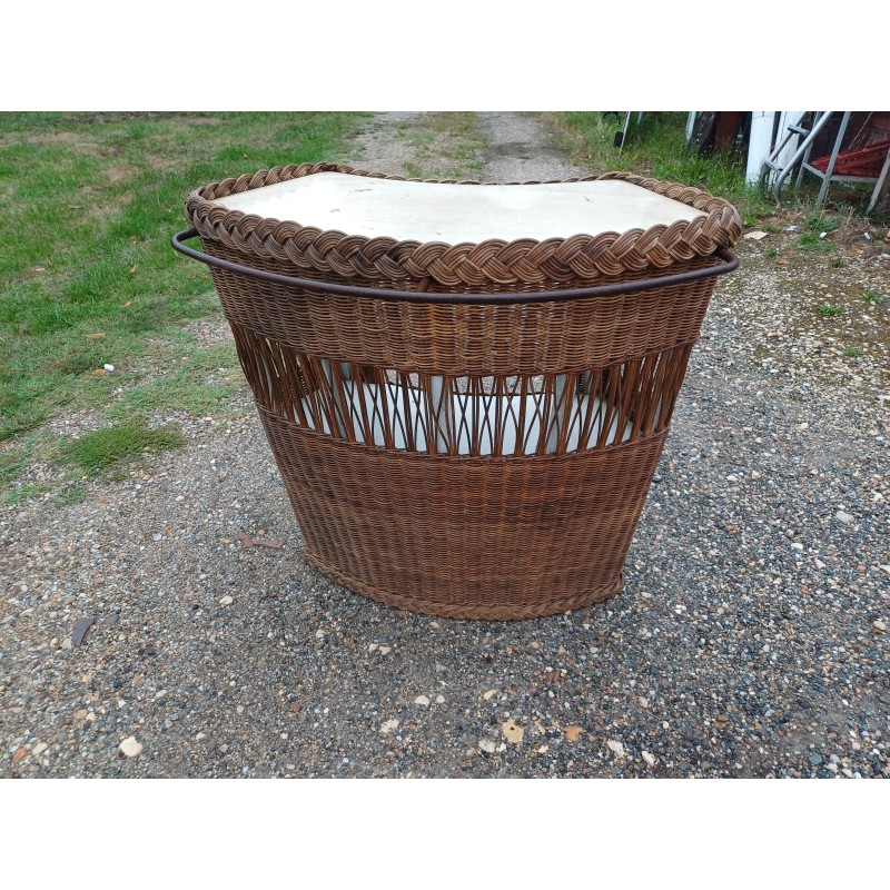 Bar Comptoir en Osier Vintage , rambarde Fer , intérieur Bois et Formica , Haut : 86 cm , long et larg : 82 cm sur 50 cm , trés bon ètat