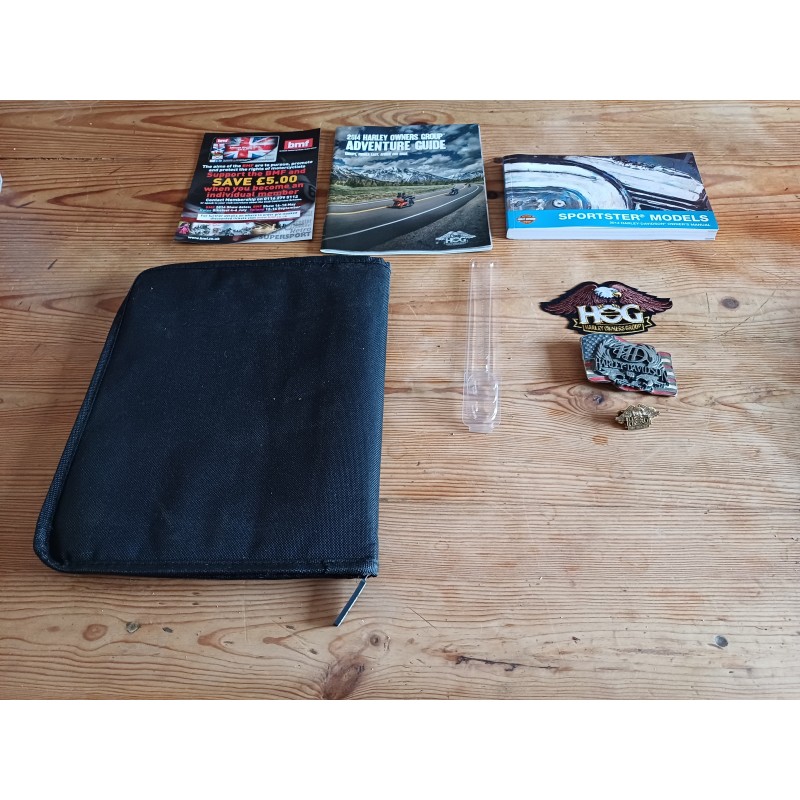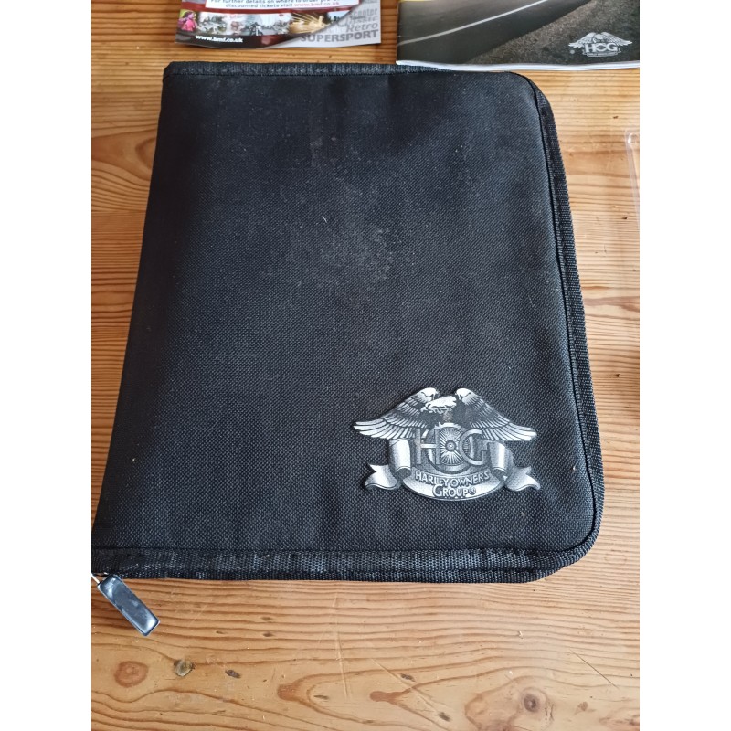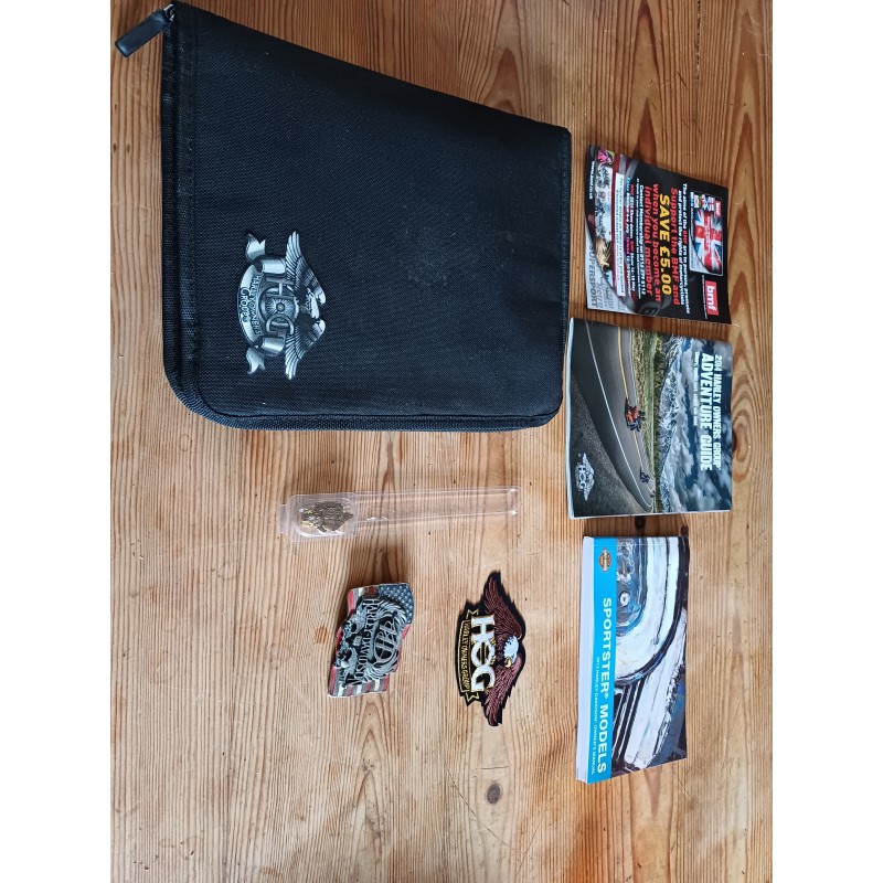 Sacoche Harley Davidson : Owners Group : 31 cm sur 26 cm , Pin's : 4 cm sur 2 cm ,écussons : 12 cm sur 7 cm , Fasicules , Livres , Revues et Boucle de Ceinturon trés bon ètat