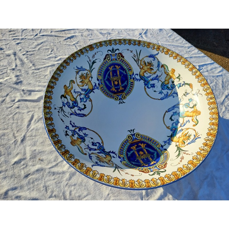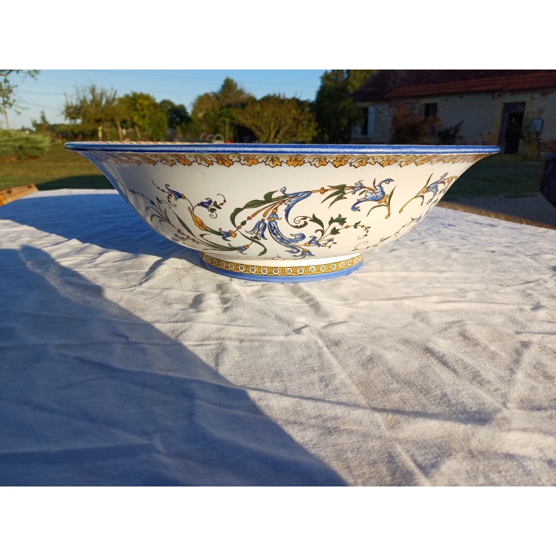Plat Creux en Faience de Gien 19 ème , Haut : 13 cm , Diam : 41,5 cm , poids : 2,2 Kg , trés bon ètat ,