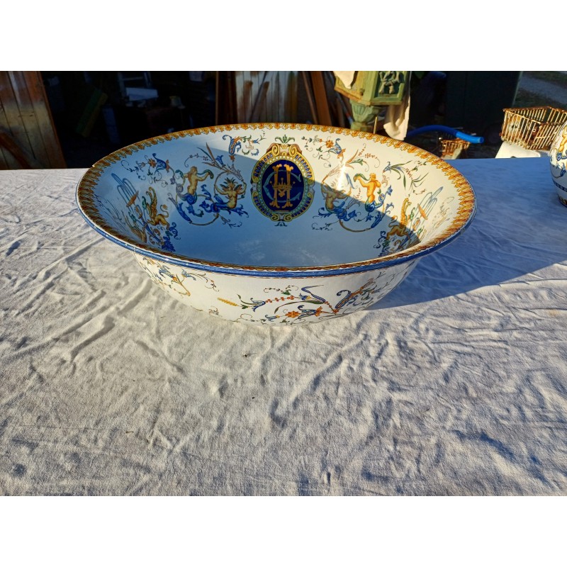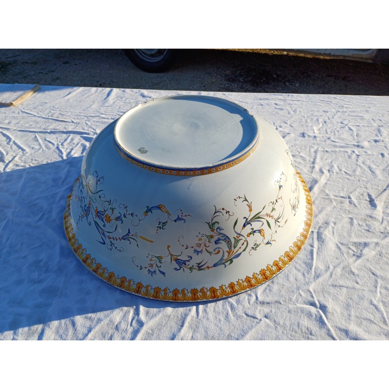 Plat Creux en Faience de Gien 19 ème , Haut : 17 cm , Diam : 51 cm , poids : 5,3 Kg , en l' ètat , égrenures et 1 féle