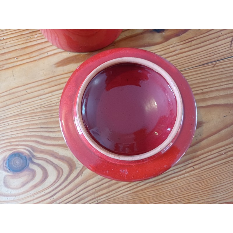 Pot Couvert Robert Picault Vallauris , Céramique émaillée rouge , Haut : 19 cm , long et larg : 22 cm sur 17,5 cm , poids : 1,2 Kg , trés bon ètat ,