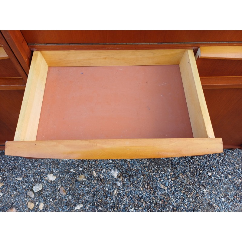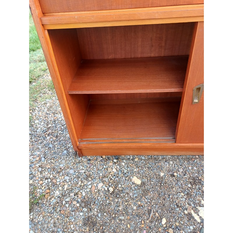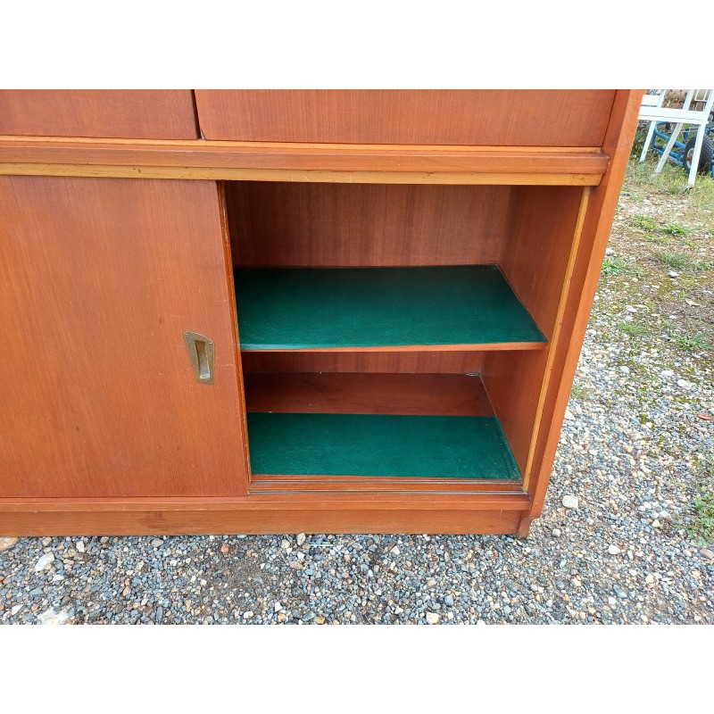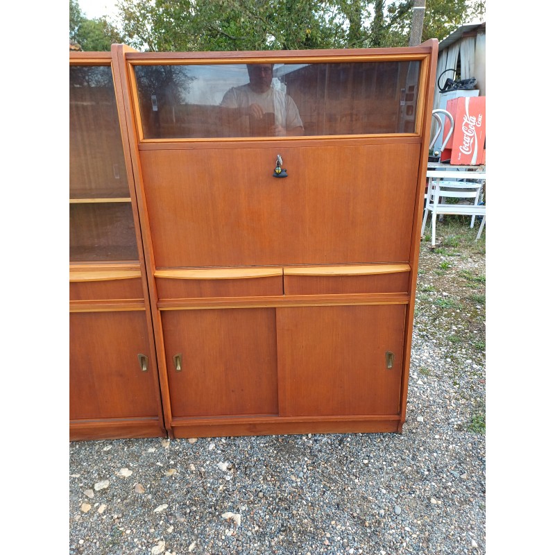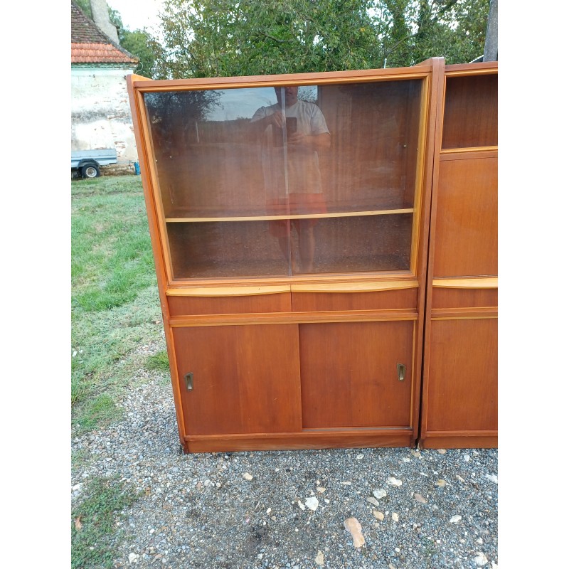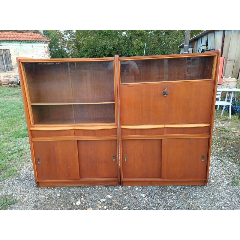 Meubles Vitrine des Années 50 Bois et Vitres , 2 Meubles séparés , Haut : 143 cm , long et larg : 94 cm sur 34 cm , par meuble , Profondeur : 25 cm et 30 cm , Portes Vitrées coulissantes , 4 Tiroirs , 4 Portes bois , coulissantes , 1 Abatant , niches , Clef et serrure , trés bon ètat