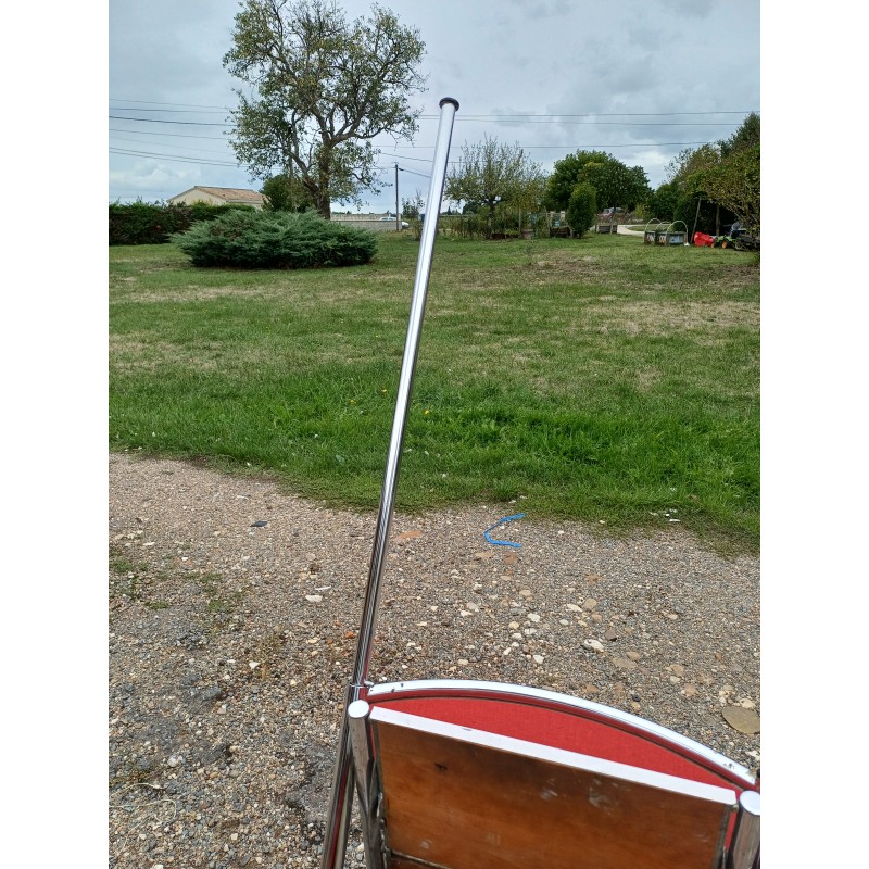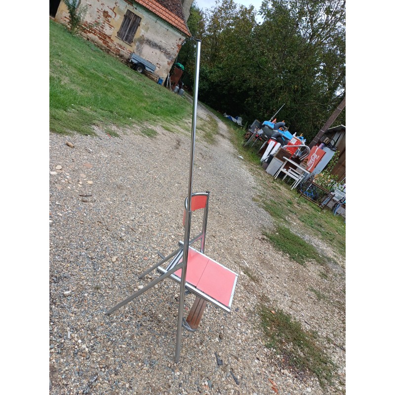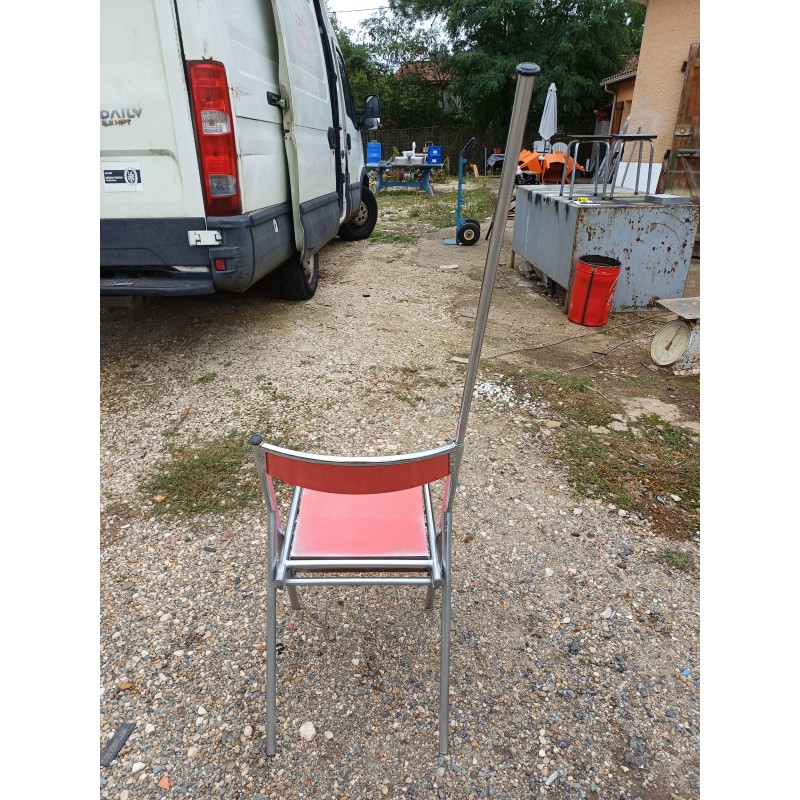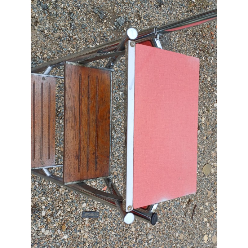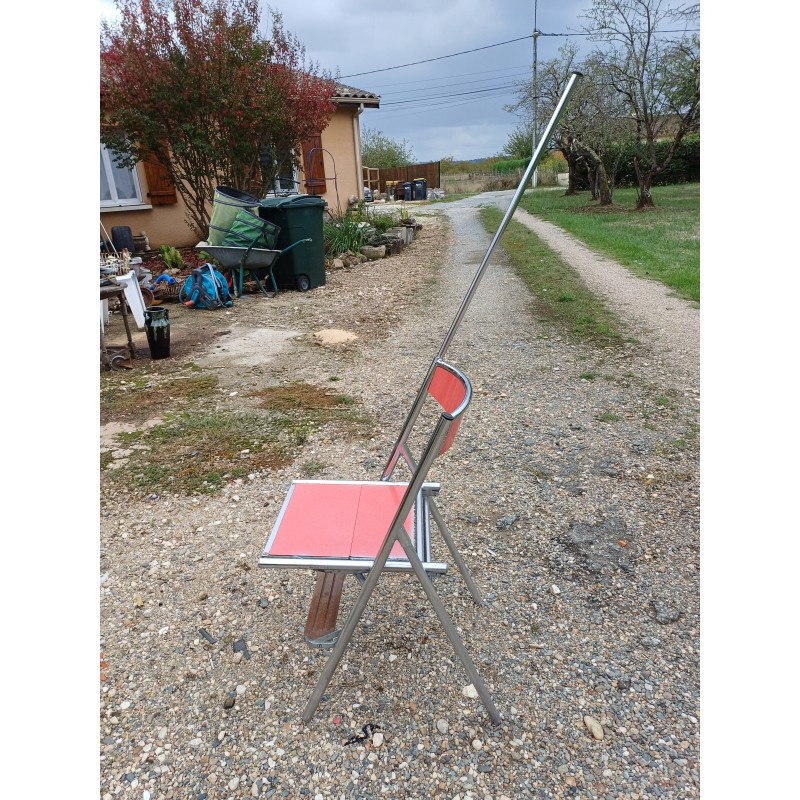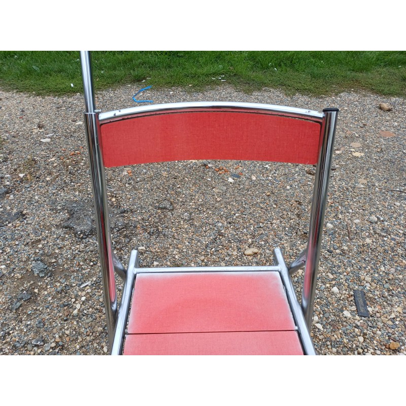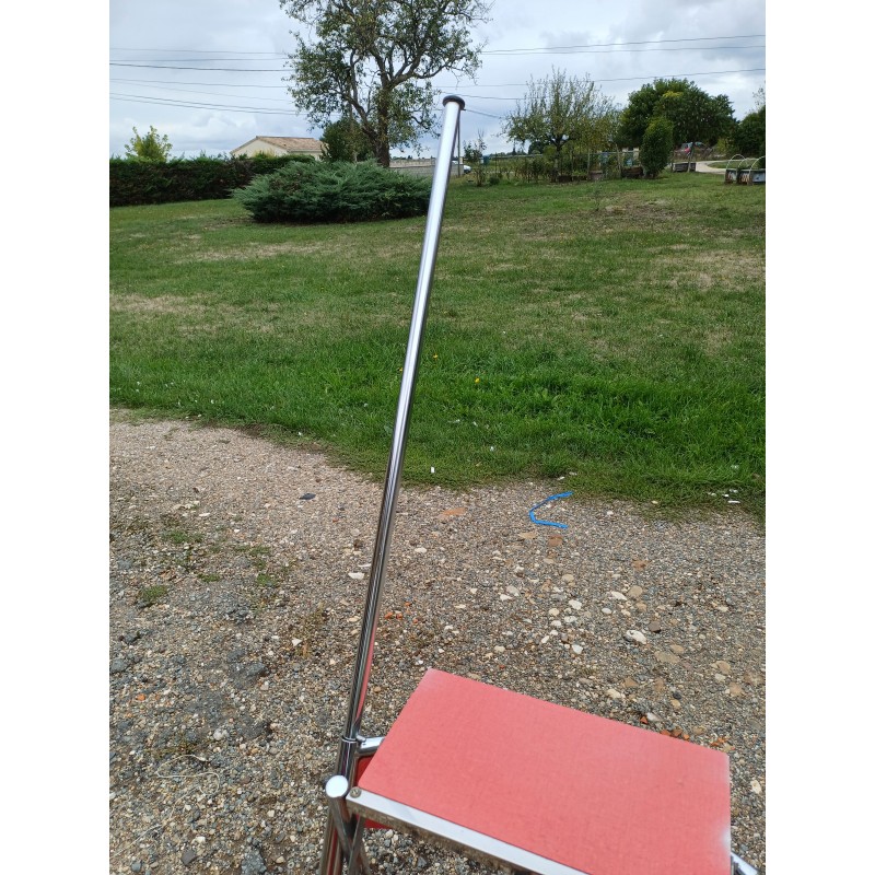 Chaise Escabeau en Formica , Bois , structure Métal Chromé , 4 Marches + 1 Barre d'appui , Haut : 77 cm , Haut d'assise : 43 cm , Haut escabeau : 78 cm , avec barre d'appui : 142 cm , poids : 8 Kg , trés bon état ,