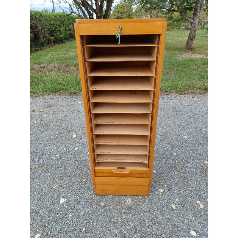 Meuble à Rideaux des Années 70 Bois , Haut : 120 cm , long et larg : 45 cm sur 35 cm , Profondeur Intérieur : 30 cm , trés bon ètat , clef et serrure et coulisse trés bien