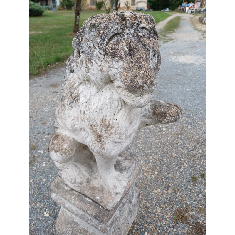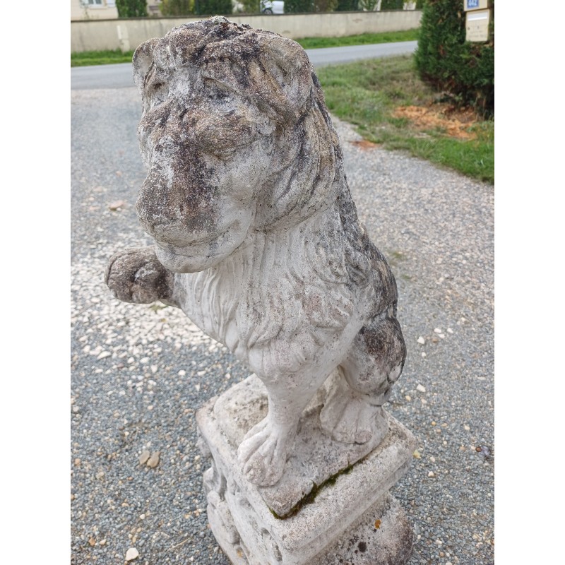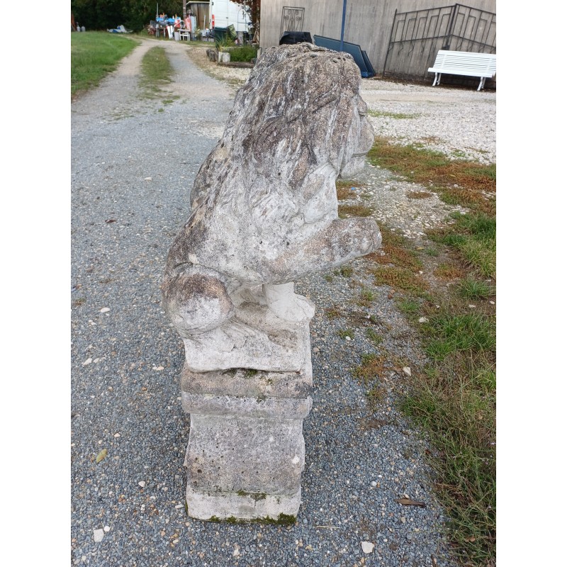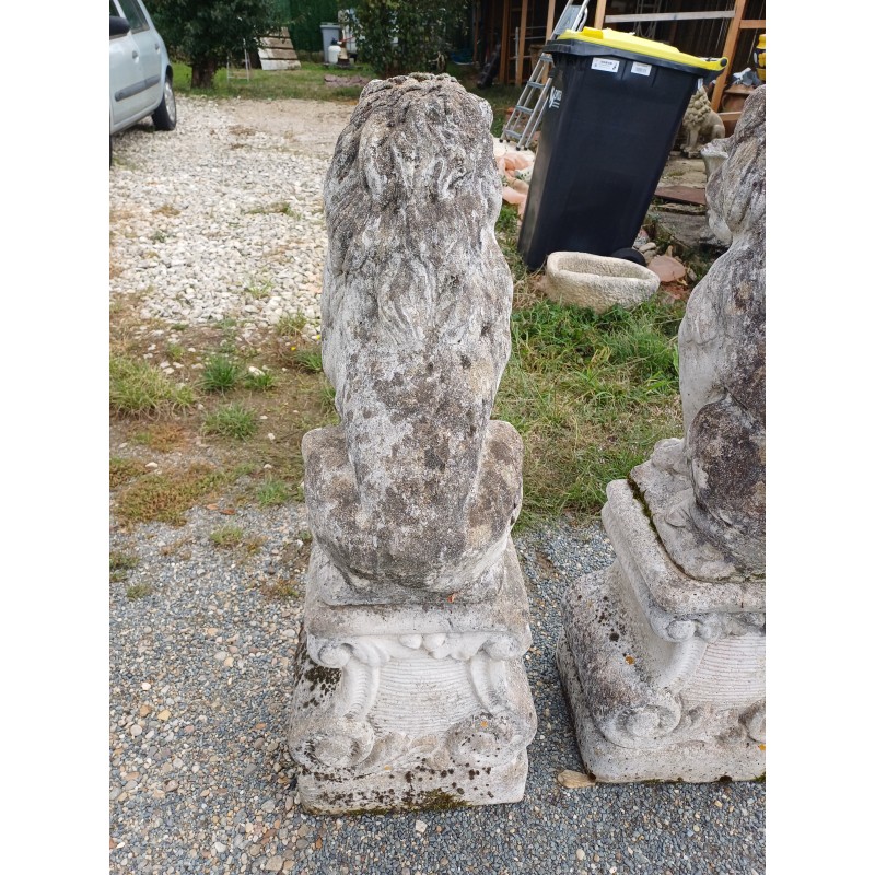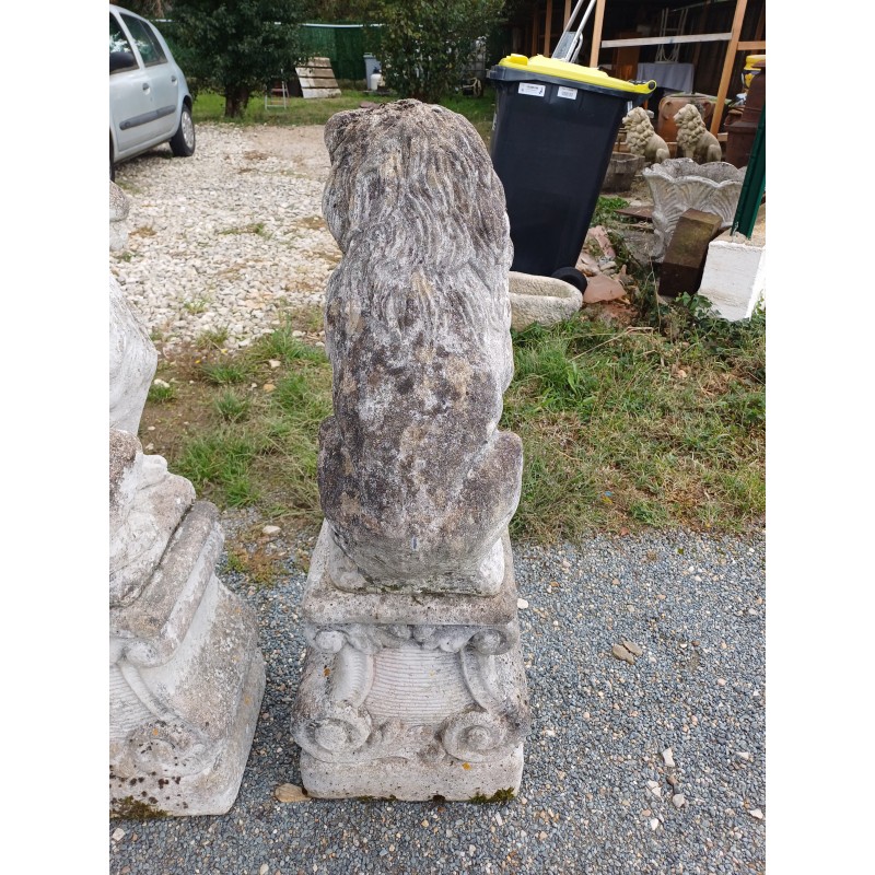 Paire de Lions en Pierre des Années 60 , poser sur Socle , Haut Totale : 103 cm , Haut Socle : 44 cm , Haut Lions : 58 cm , poids Total : 100 Kg , trés bon ètat