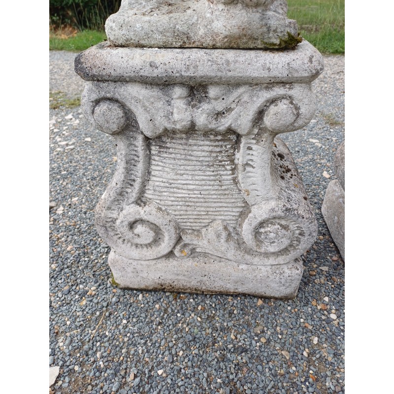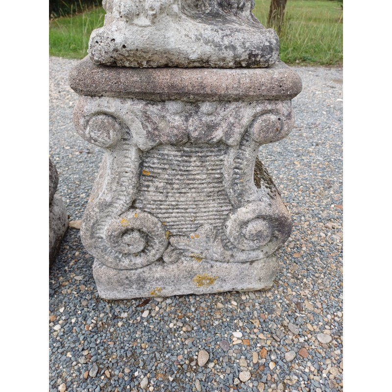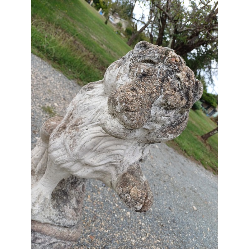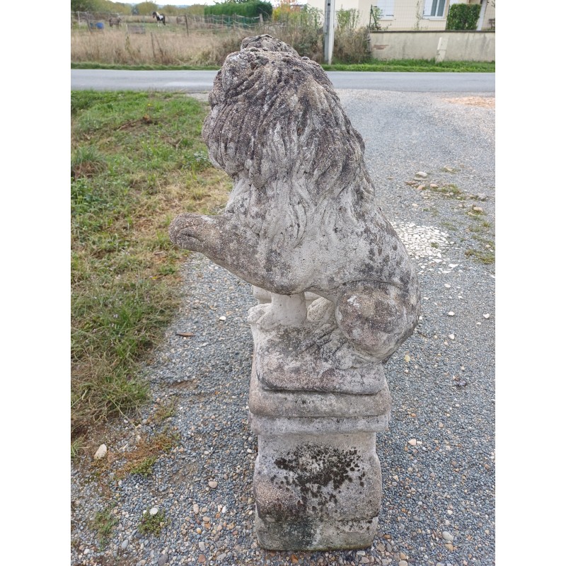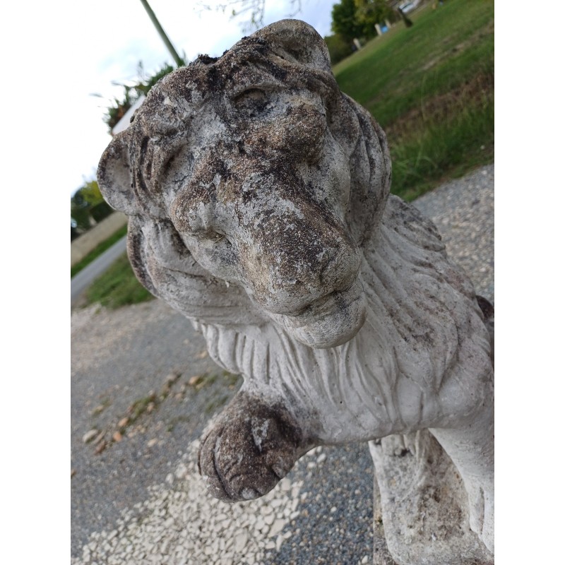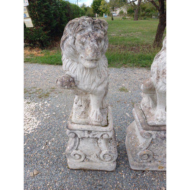 Paire de Lions en Pierre des Années 60 , poser sur Socle , Haut Totale : 103 cm , Haut Socle : 44 cm , Haut Lions : 58 cm , poids Total : 100 Kg , trés bon ètat