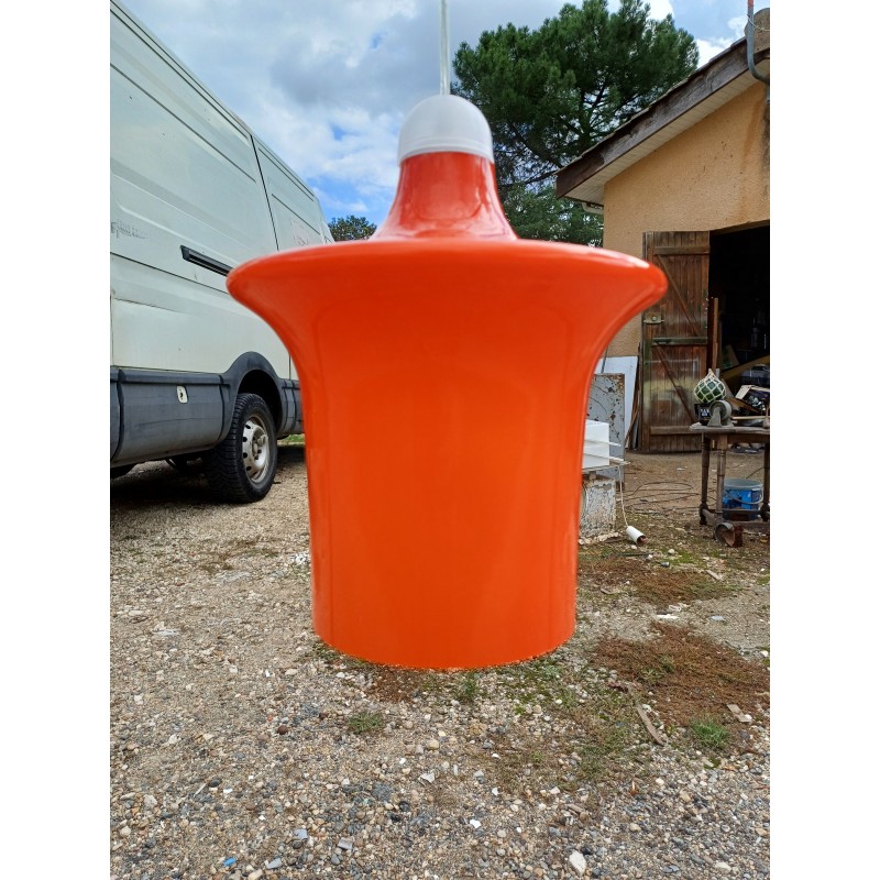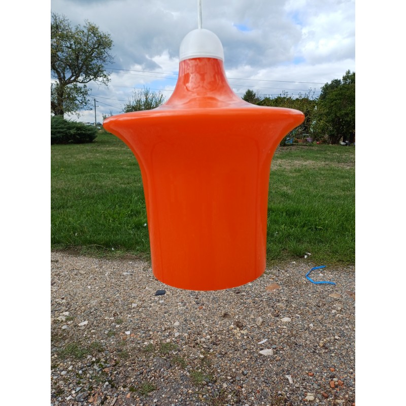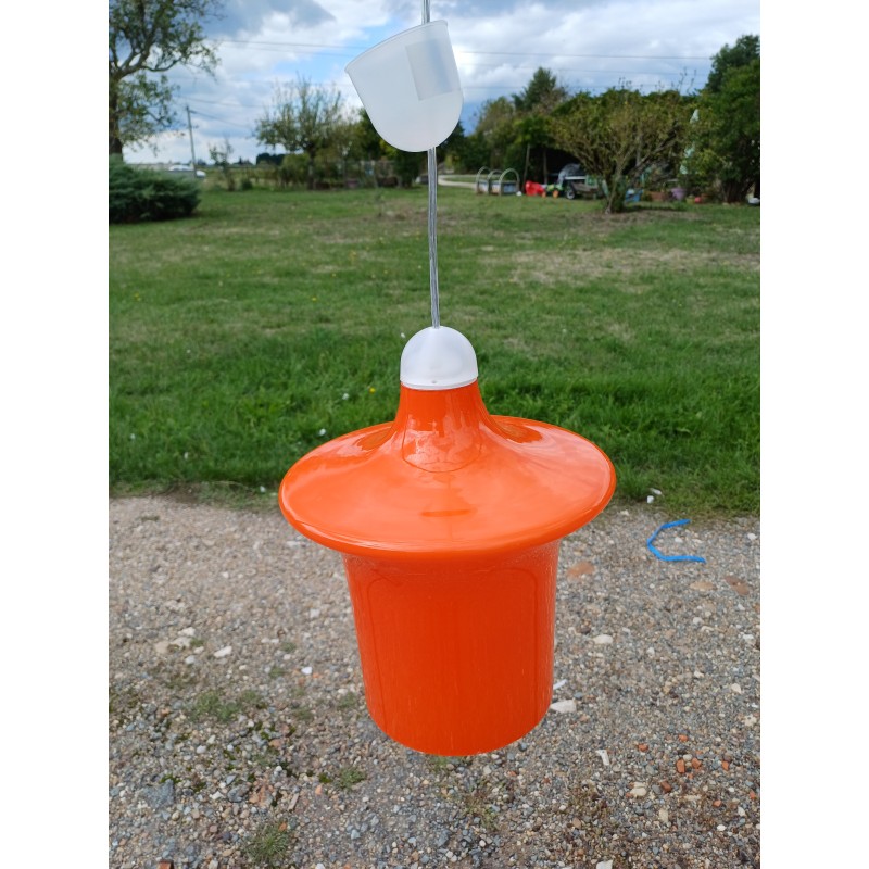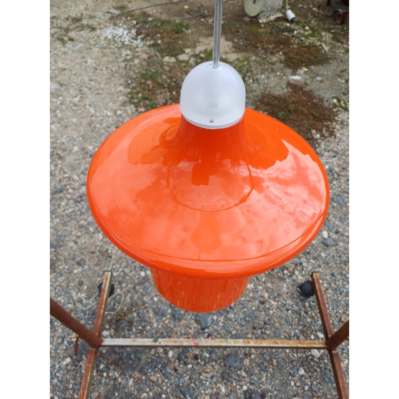 suspension Vintage des Années 70 en Opaline Orange et Blanche , Haut : 31 cm , Diam 26 cm , trés bon ètat