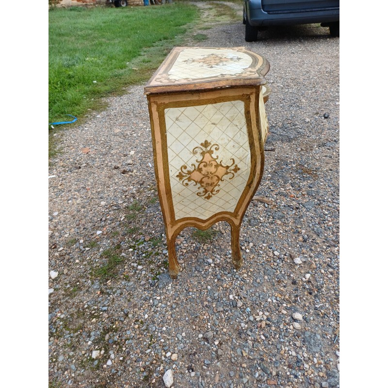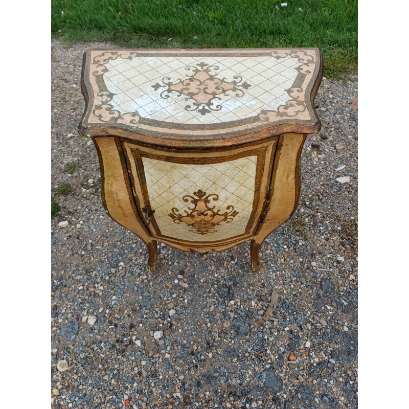 Meuble Chevet Ventru en Bois doré , 1 Porte , Clef et serrure , Haut : 70 cm , long et larg : 55 cm sur 32 cm , poids : 7,8 cm + Tablette , Haut : 43 cm , Diam : 36 cm , poids : 1,2 Kg , trés bon ètat