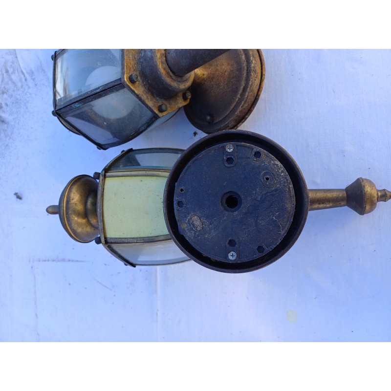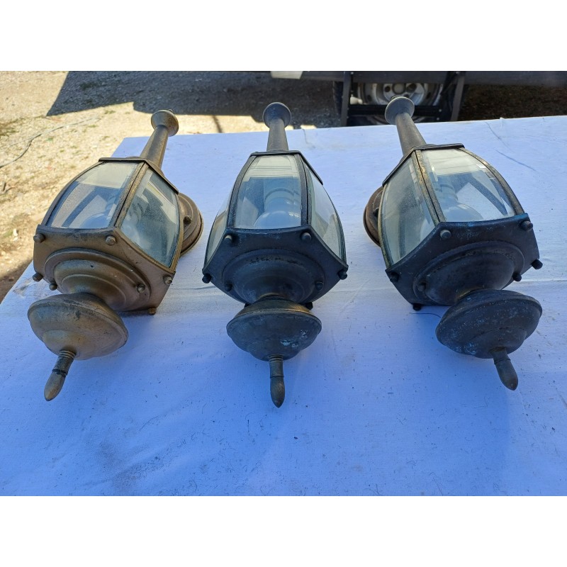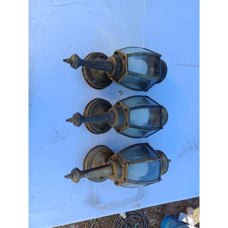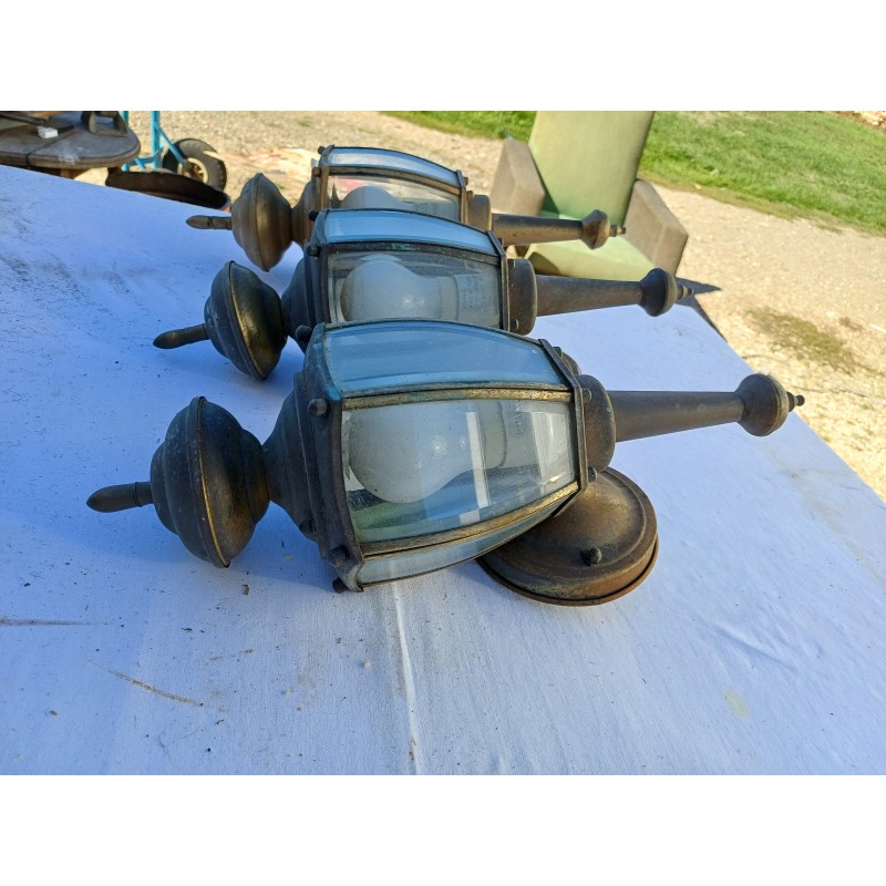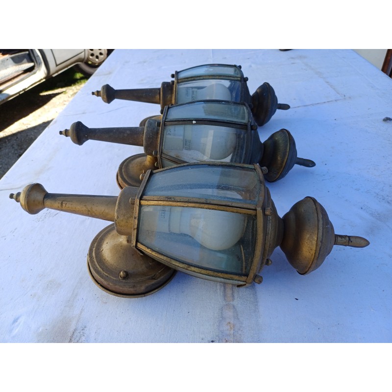 3 Appliques Laiton et Verre , Haut : 41 cm , long et larg : 15 cm sur 14 cm , poids Total : 3 Kg , Bon état sales dans leurs jus