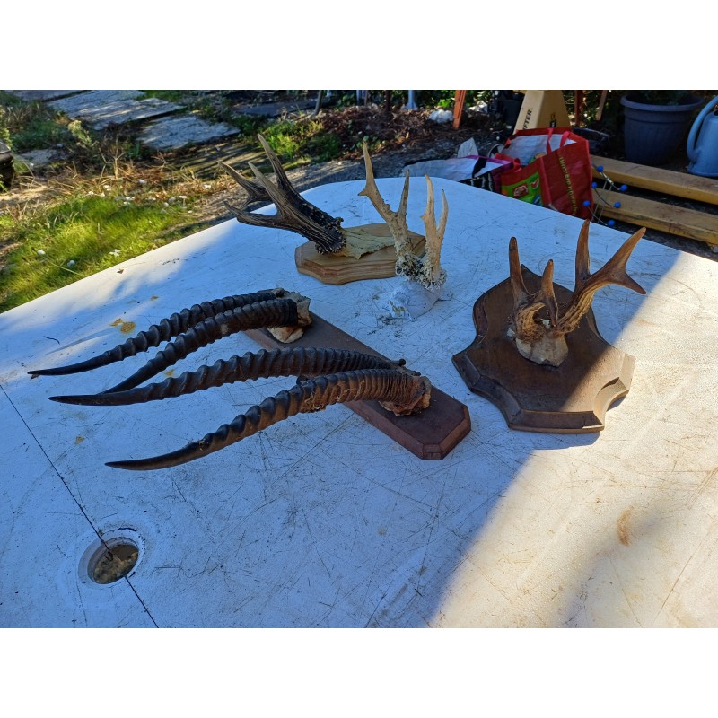 Lot de Cornes Massacres Chevreuil , Antilopes , Haut : 20 cm , long et larg : 25 cm sur 10 cm , Haut : 34 cm , long et larg : 8,5 cm sur 5 cm , Haut : 22 cm , long et larg : 10,5 cm sur 8 cm , trés bon ètat