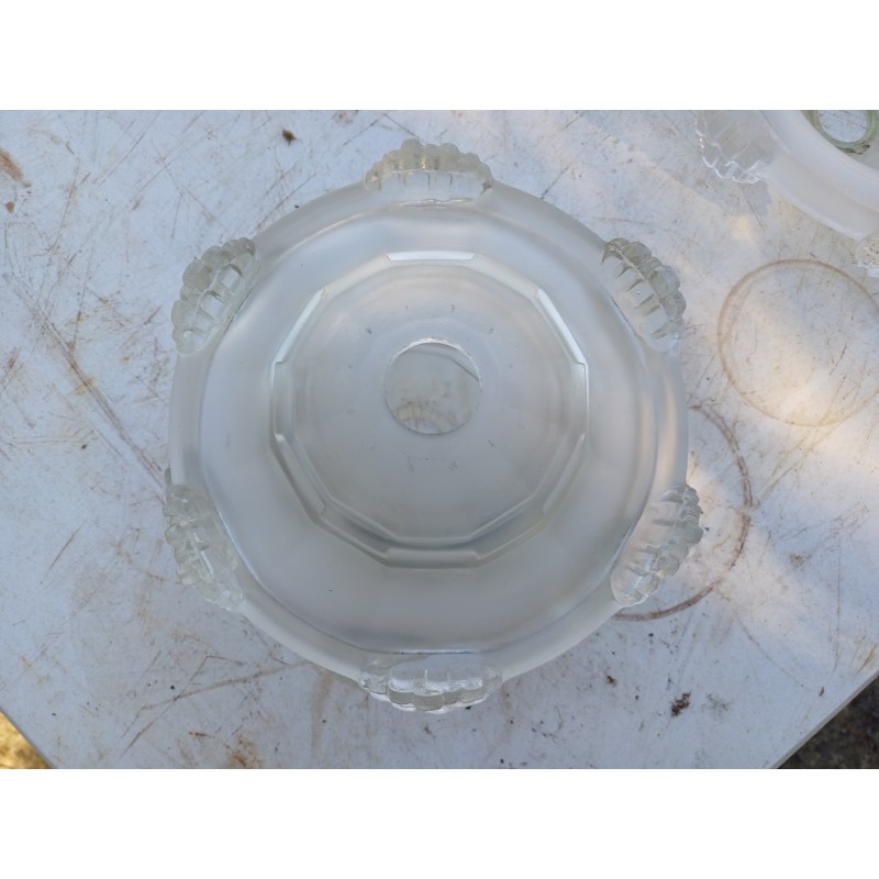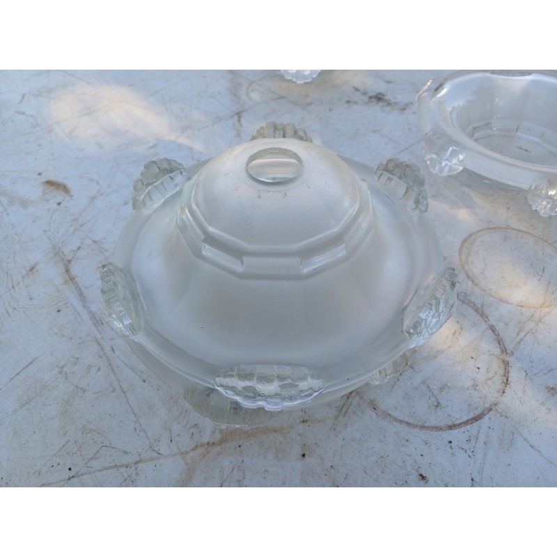7 Tulipes en verre transparent et Opalin , de Style Art déco , Haut 6,5 cm , Diam : 21 cm , poids : 720 g pièce , trés bon ètat ,