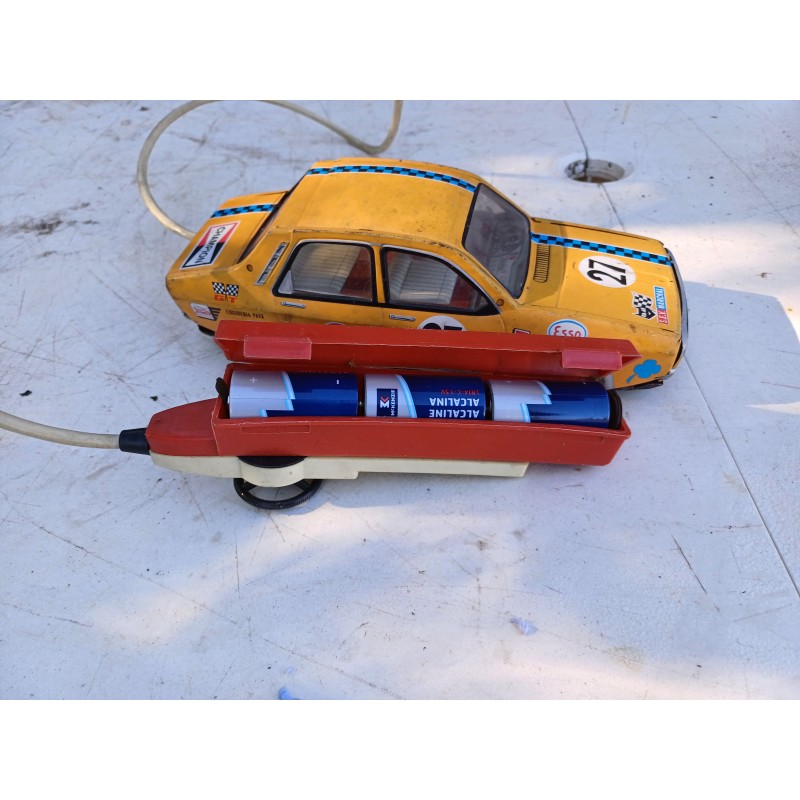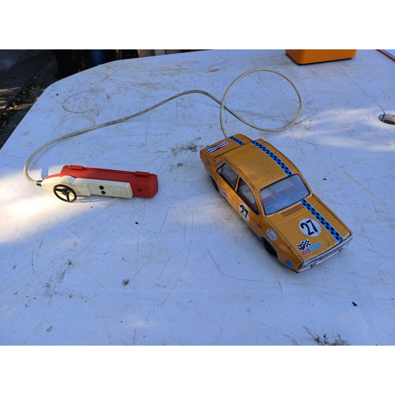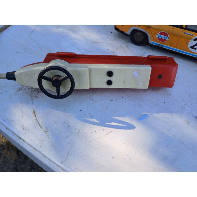 Jouet Ancien Voiture Téléguidé Filaire , avec piles , Jouet en Tole , Haut : 8,5 cm , long et larg : 26 cm sur 10 cm , poids : 400 g , trés bon ètat mais mécanisme à Piles peu Performant , surement du Nettoyage a prévoir a l'intérieur