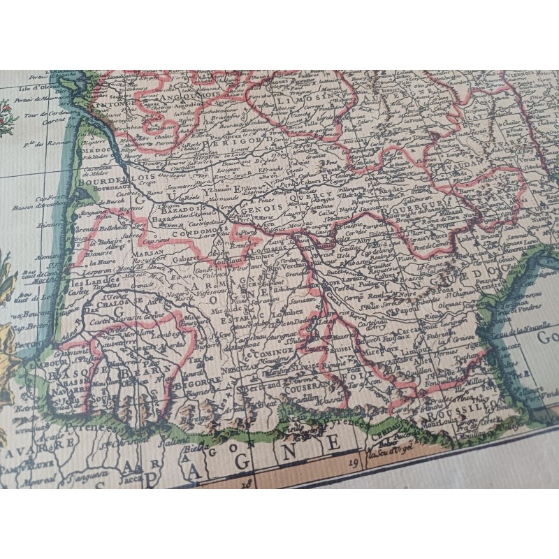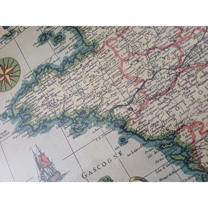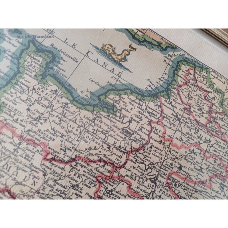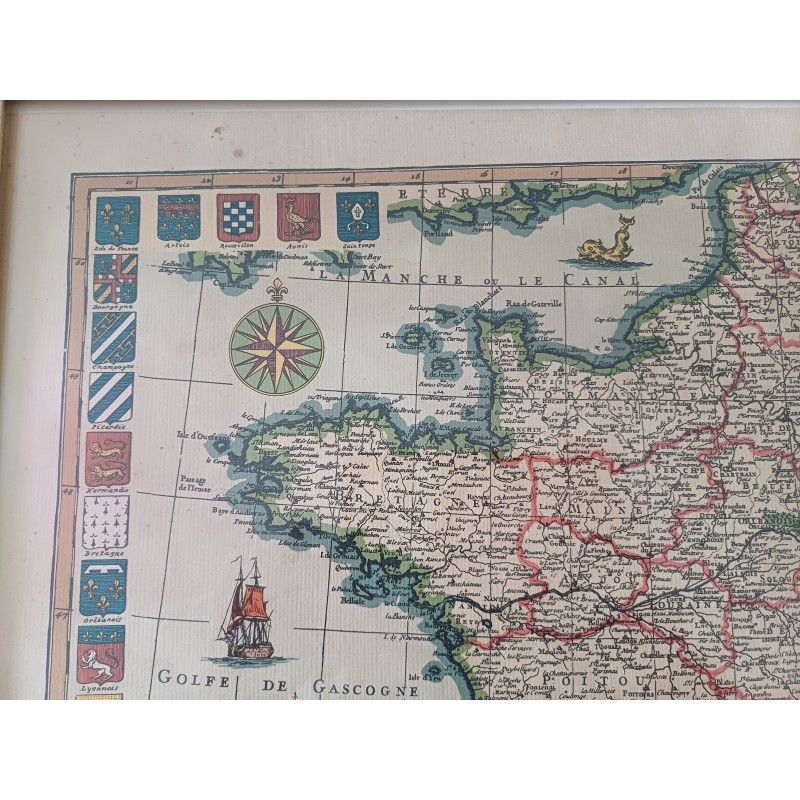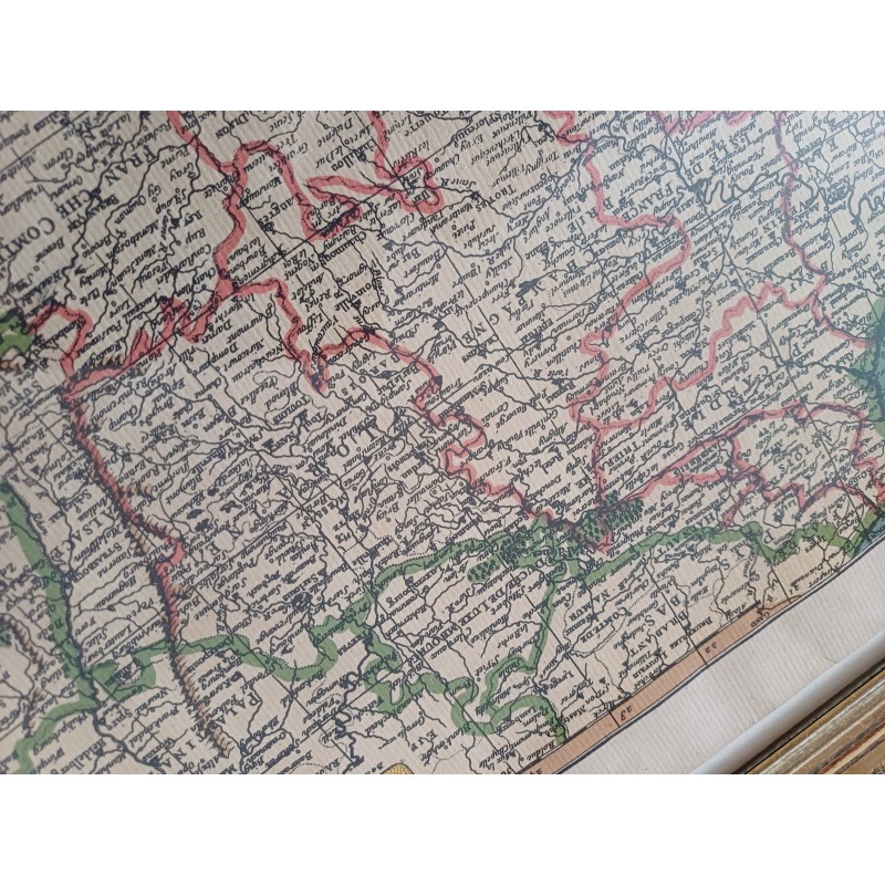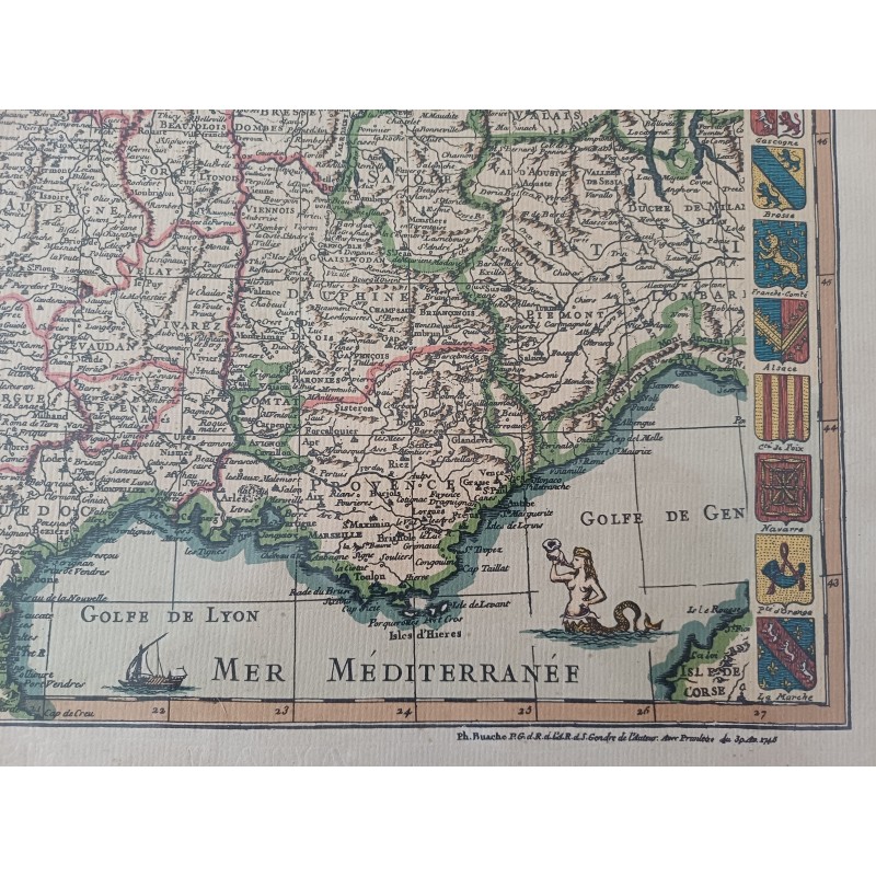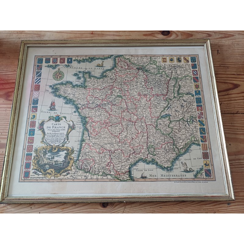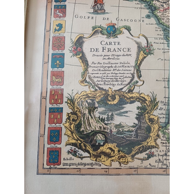 Lithographie Carte de France par Ph.Ruache 1745 , Dréssée pour l'usage du Roy en Avril 1721 par Guillaume de l'Isle , encadrée sous verre , Dimensions : 54 cm sur 43 cm , trés bon ètat