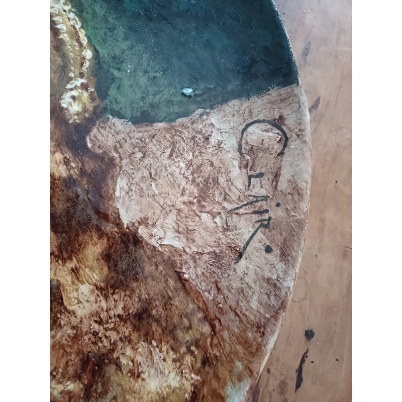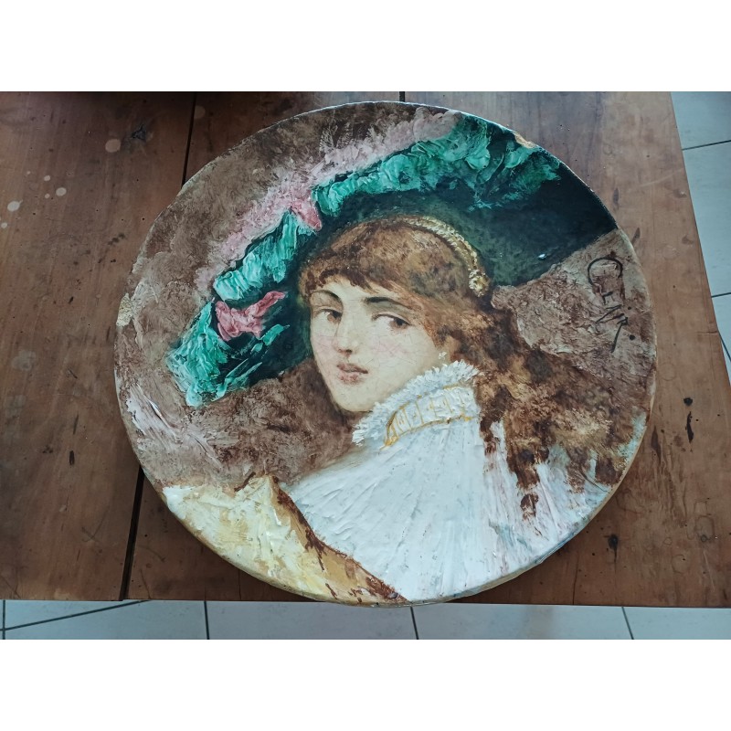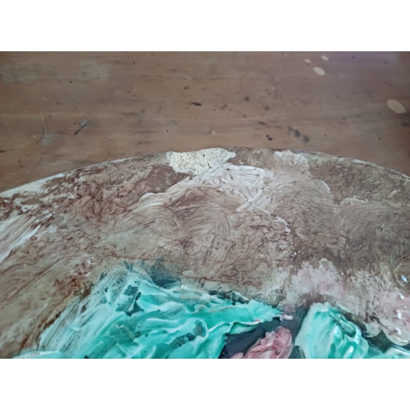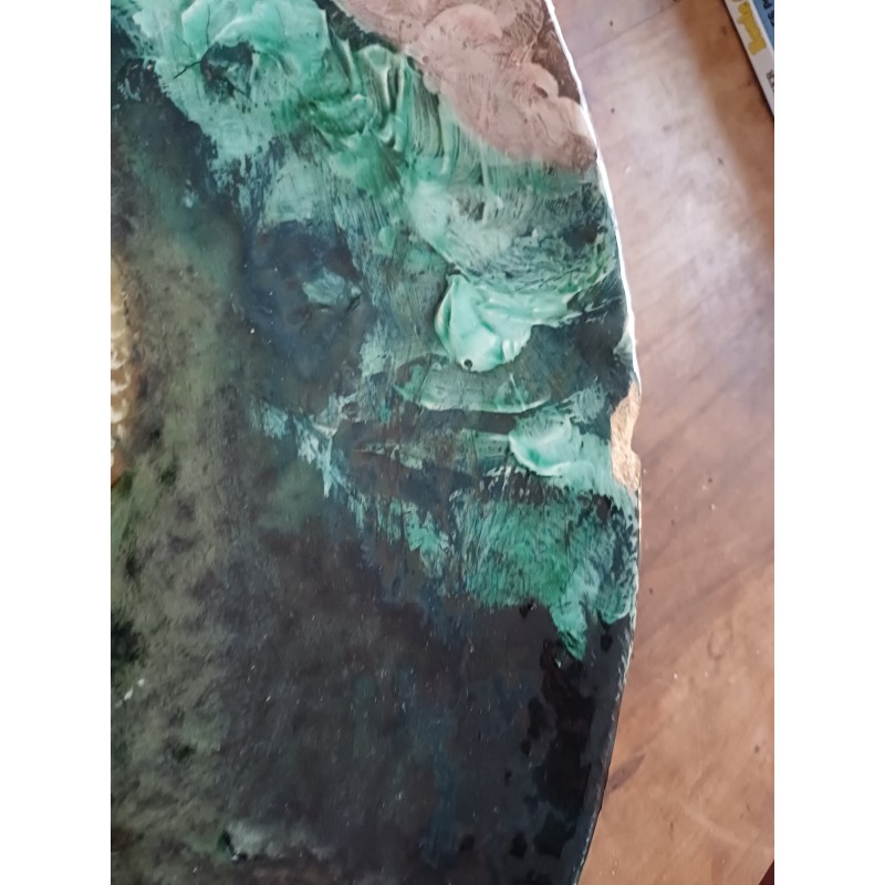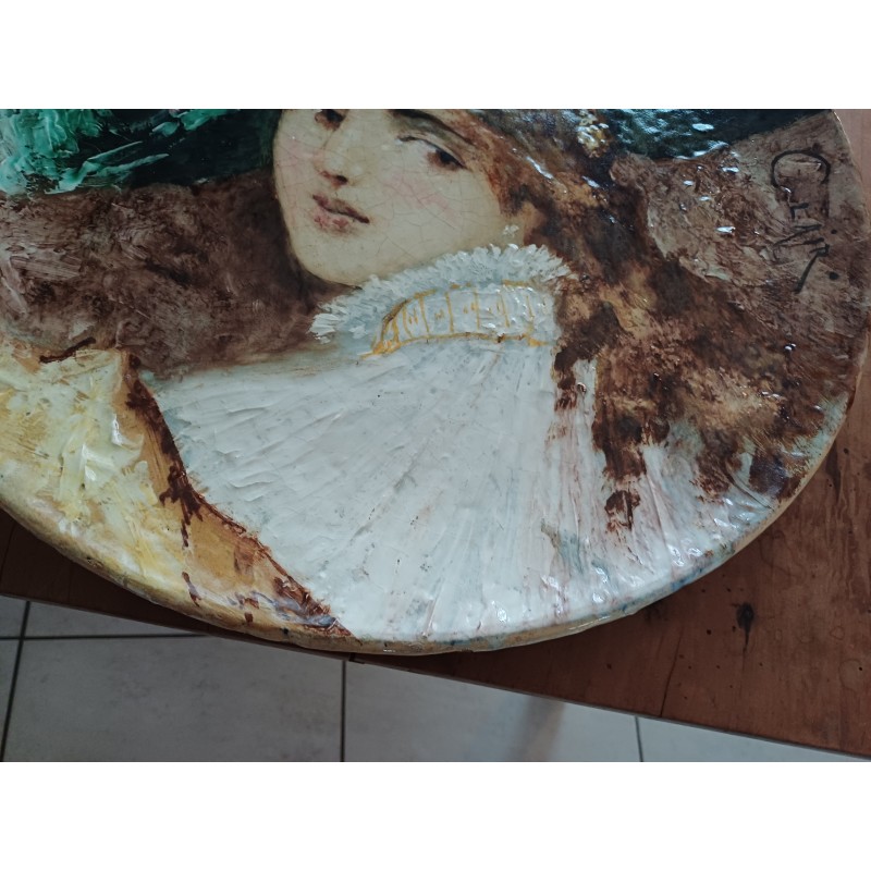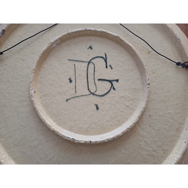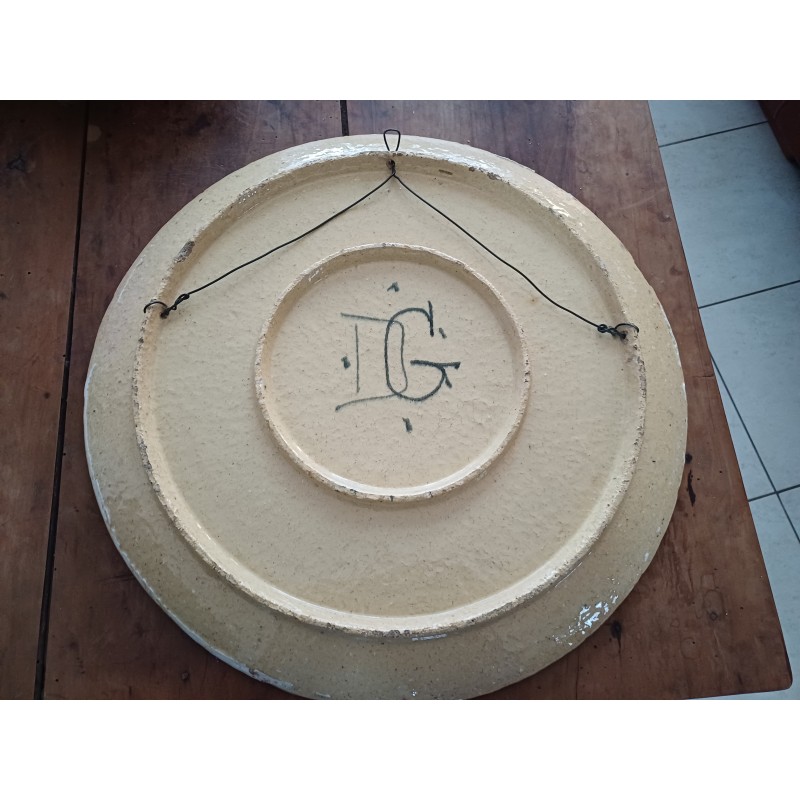 Barbotine Dominique Grenet " Gien " 1821-1885 , Décorateur : Jean Clair , Diam : 46,5 cm , épaisseur : 4,5 cm , poids : 5 Kg , trés bon ètat malgré 2 égrenures a noter