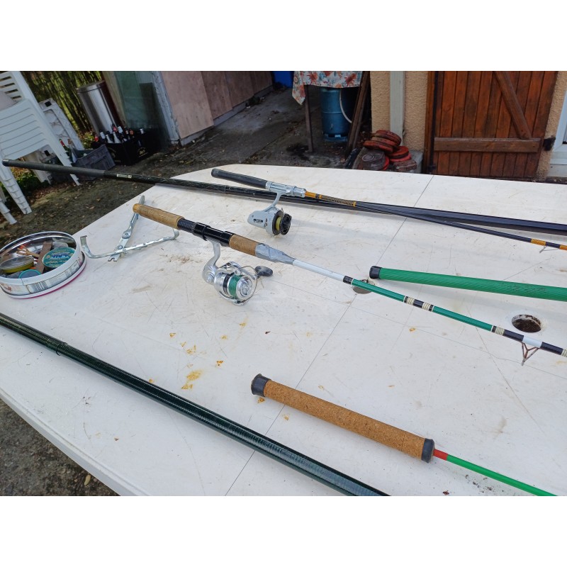 Lot de Cannes à Péches , Moulinets , épuisette , etc.....