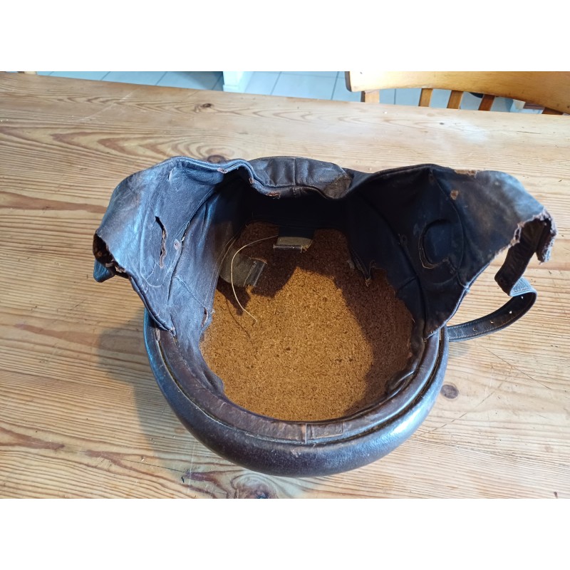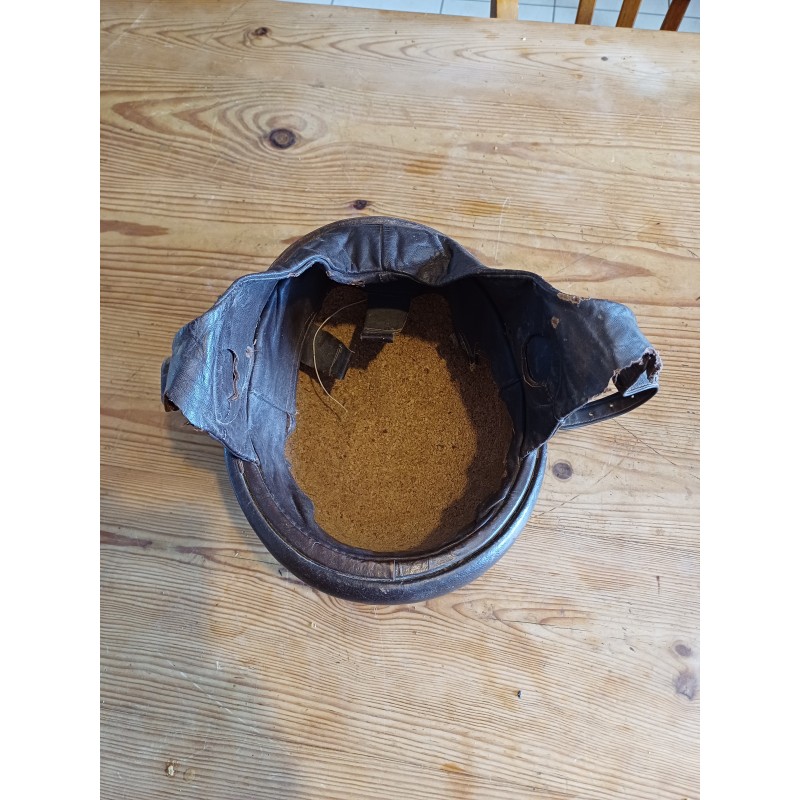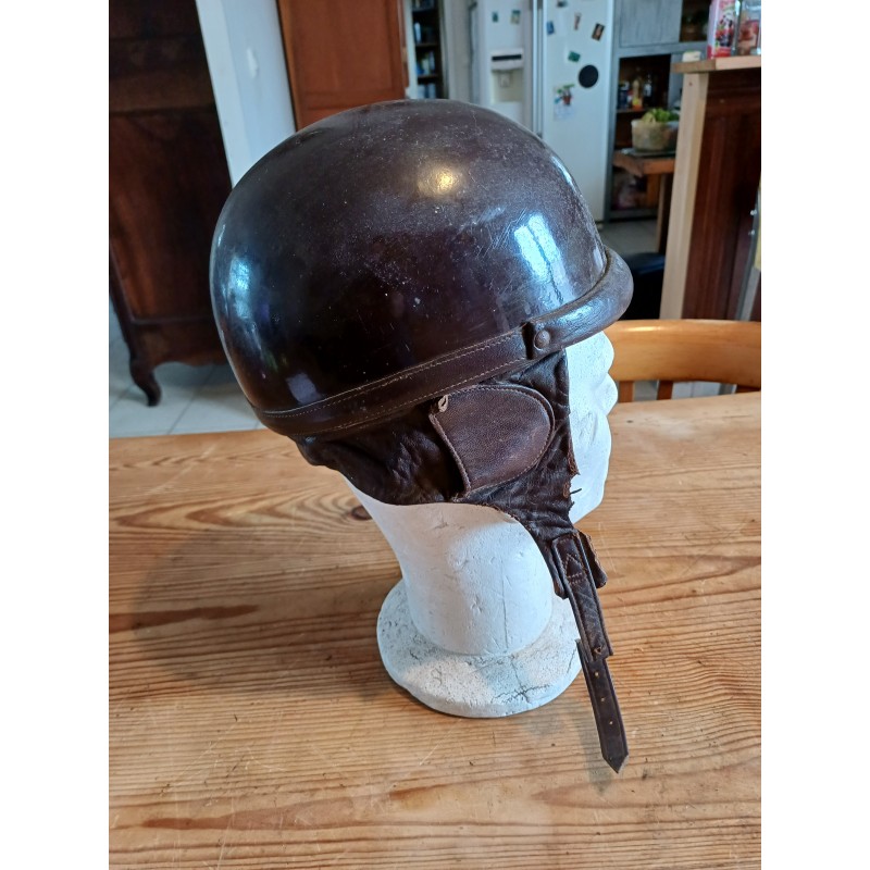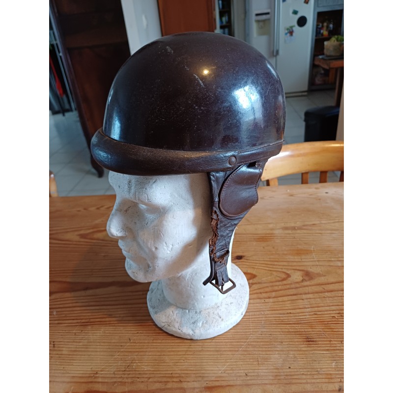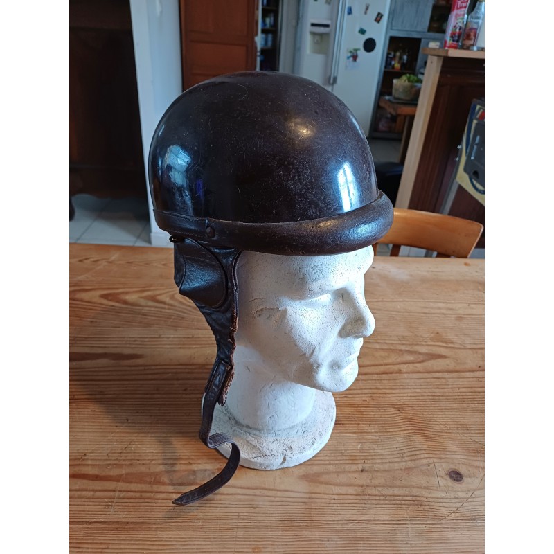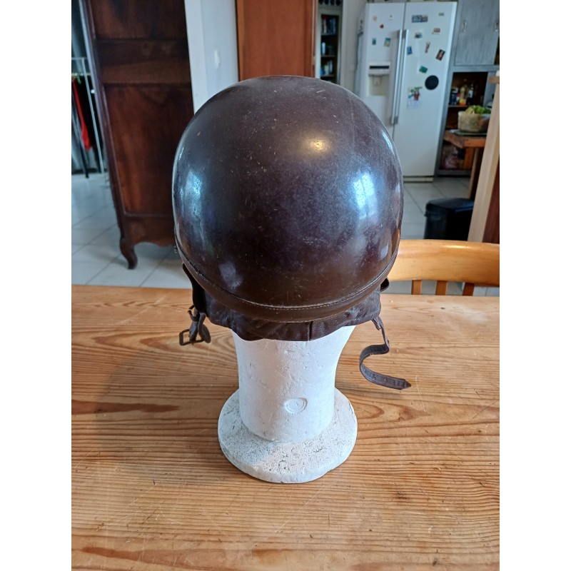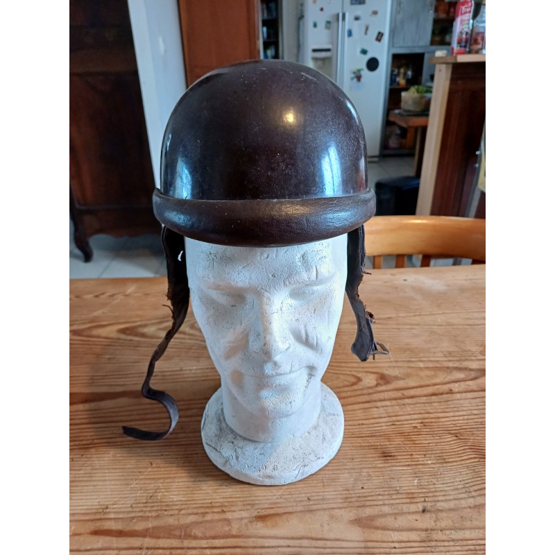 Casque de Moto Vintage , Plastic , cuir et liège , Haut : 14 cm , long et larg : 24 cm sur 19 cm , poids : 450 g , trés bon ètat