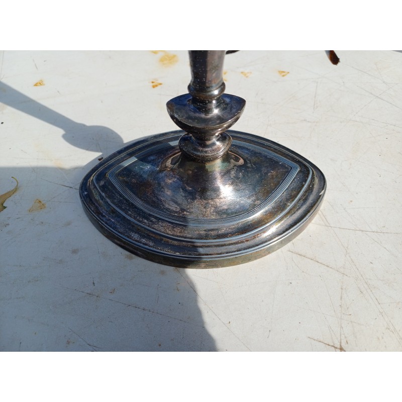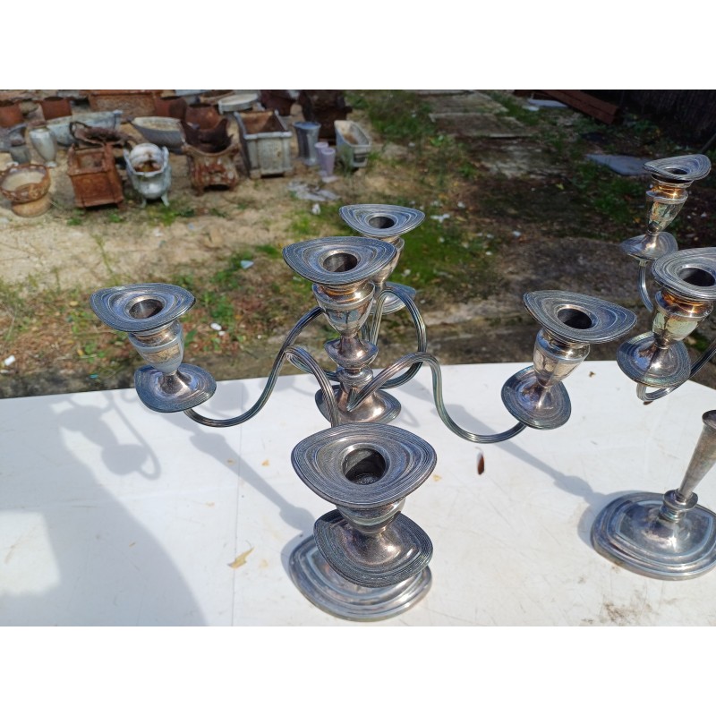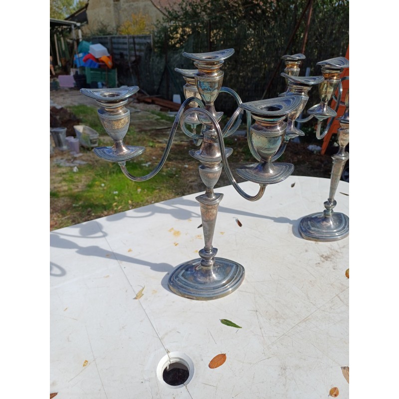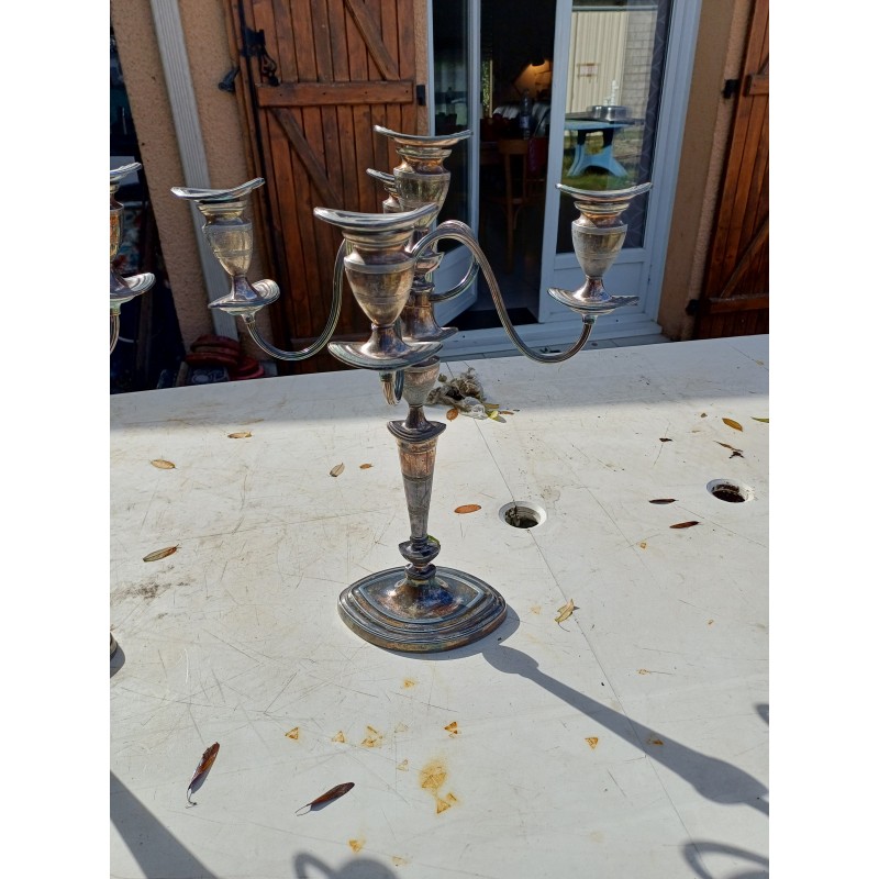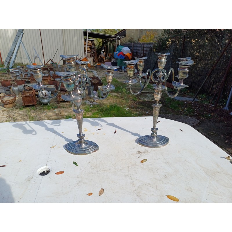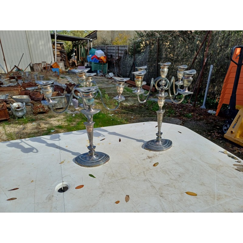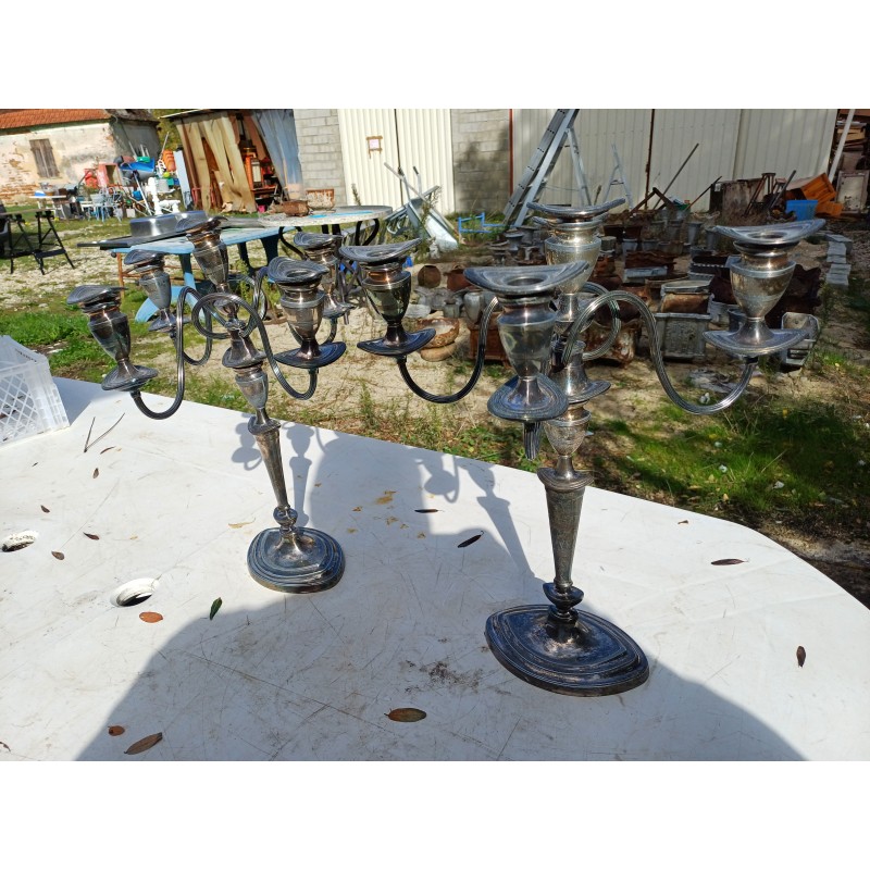 Paire de Chandeliers en Métal Argenté , 5 Branches , Haut : 44 cm , long et larg : 37 cm sur 37 cm , poids : 3,7 Kg pièce , trés bon ètat