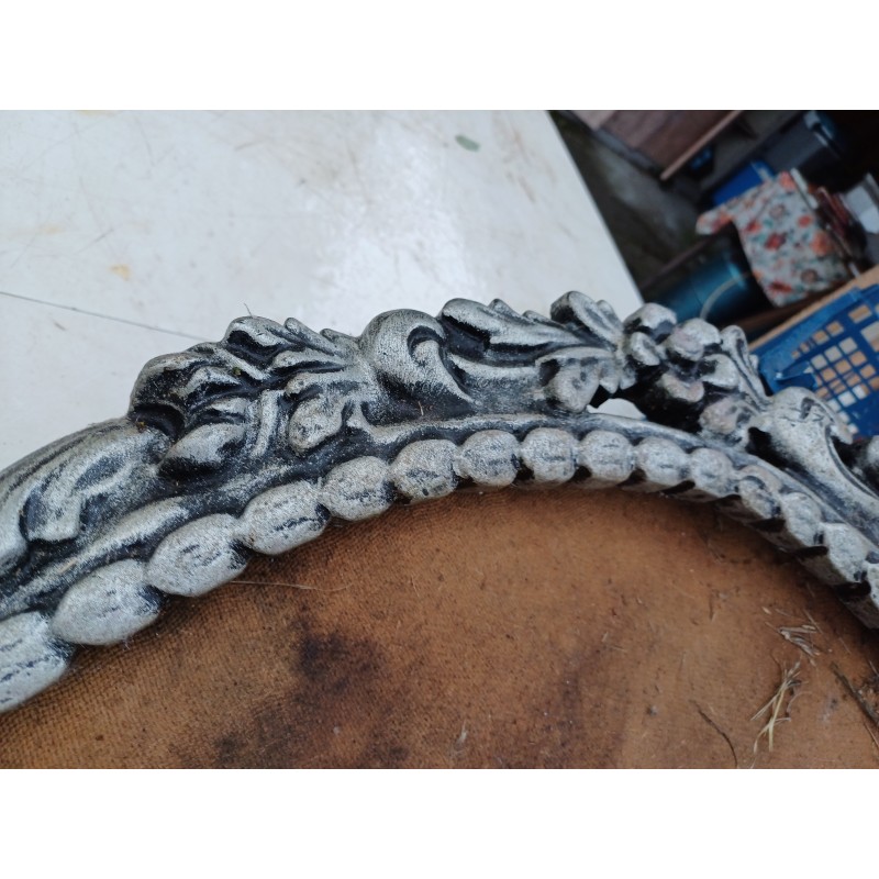 Cadre Bois Cérusé Vieux Gris , Ovale , Haut : 72 cm , long et larg : 48 cm sur 3 cm , poids : 3,2 Kg , trés bon ètat