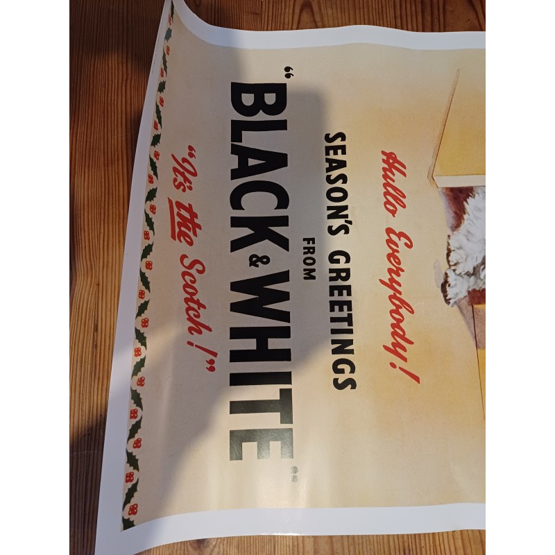 Affiche Publicitaire du Whisky Black and White , Papier , Dimensions : 70 cm sur 50 cm , trés bon ètat