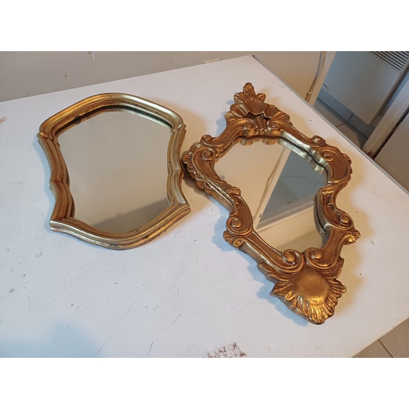2 Miroirs Bois et Stuk Doré Dimensions : 30 cm sur 23 cm et 45 cm sur 28 cm , poids Total : 2,1 Kg , trés bon ètat