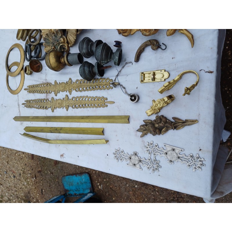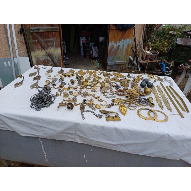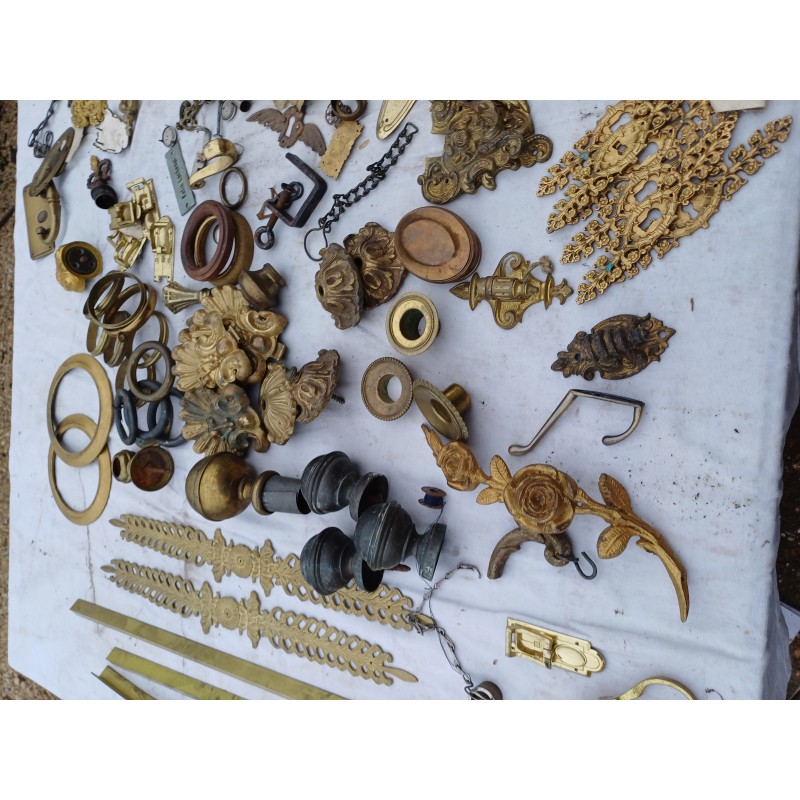 Lot déléments de déco Bronze et Laiton , serrures , Portes anciennes , Boutons Meubles , etc...le tout est en trés bon état , poids Total : 13 Kg