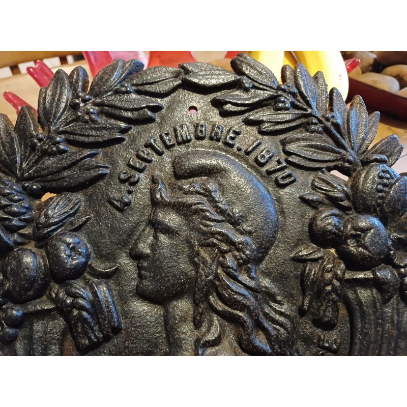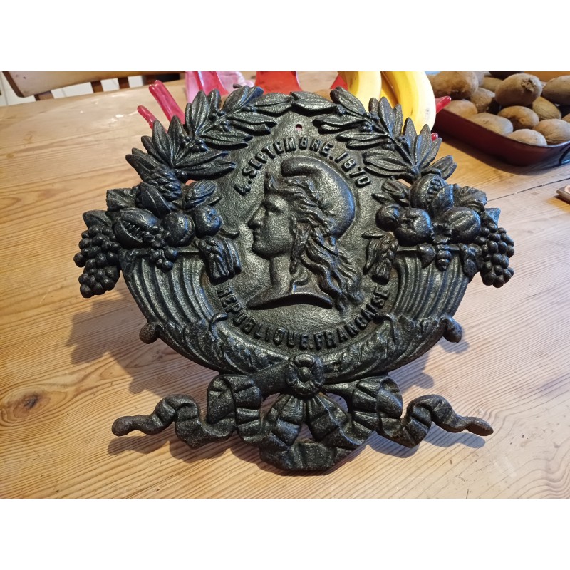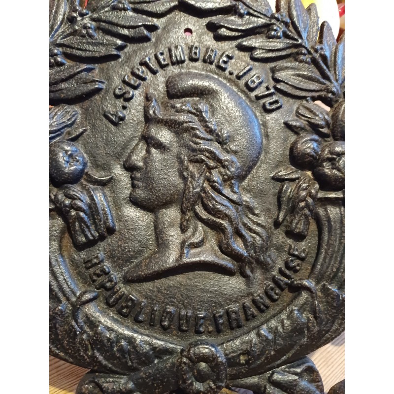 Plaque Fonte 4 Septembre 1870 République Française , Haut : 29 cm , long et larg : 32 cm sur 1 cm , poids : 2,620 Kg , trés bon ètat