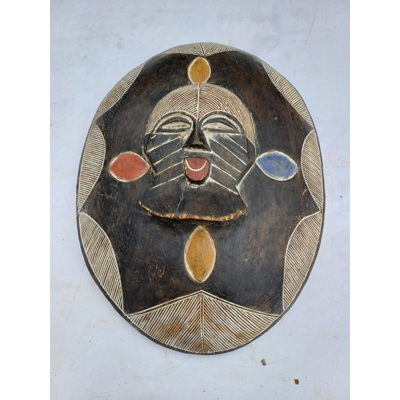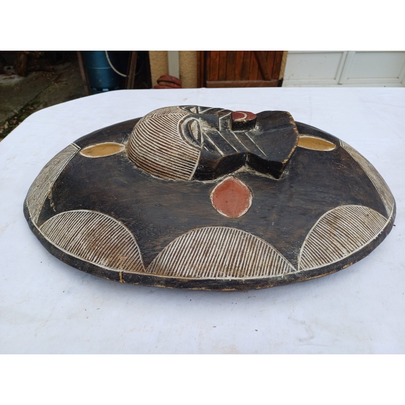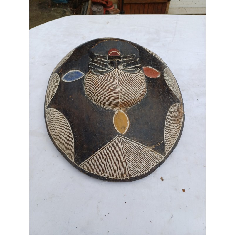 Bouclier Africain Bois , Kaolin , Haut : 55,5 cm , Long et larg : 40,5 cm sur 12 cm , poids : 2 Kg , trés bon ètat ,