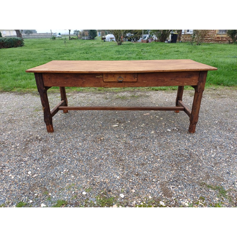 Table de Ferme Campagnarde 19 éme Noyer et Pin , 3 Tiroirs